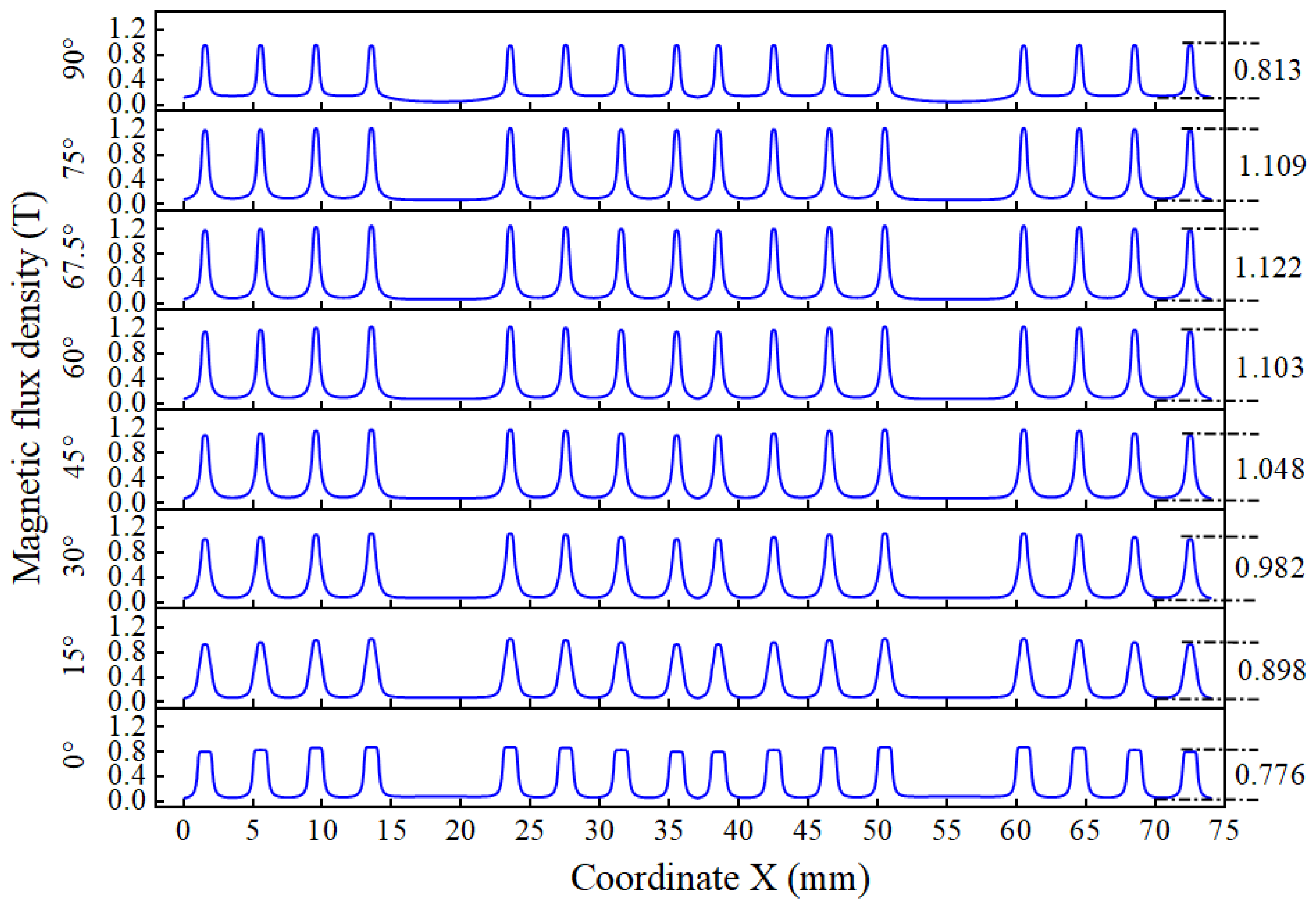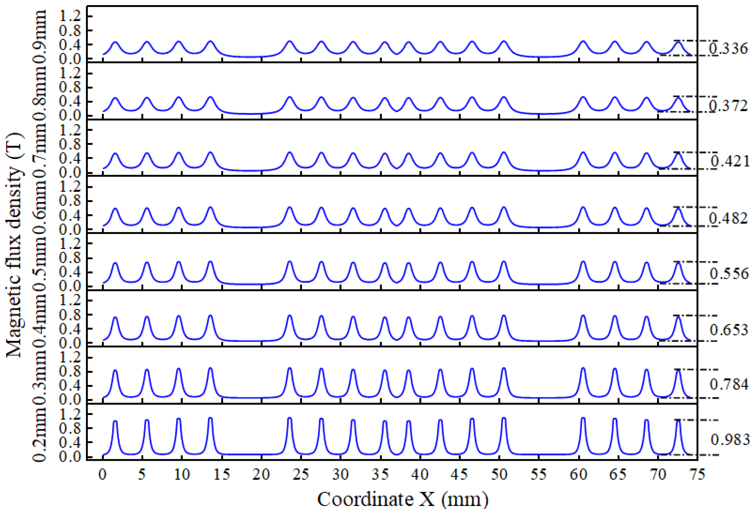 - Trbušić, M.; Goričan, V.; Beković, M.; Jesenik, M.; Trlep, M.; Hamler, A. An experimental study on magnetic field distribution above a magnetic liquid free surface. J. Magn. Magn. Mater. 2020, 509, 166903. [Google Scholar] [CrossRef]