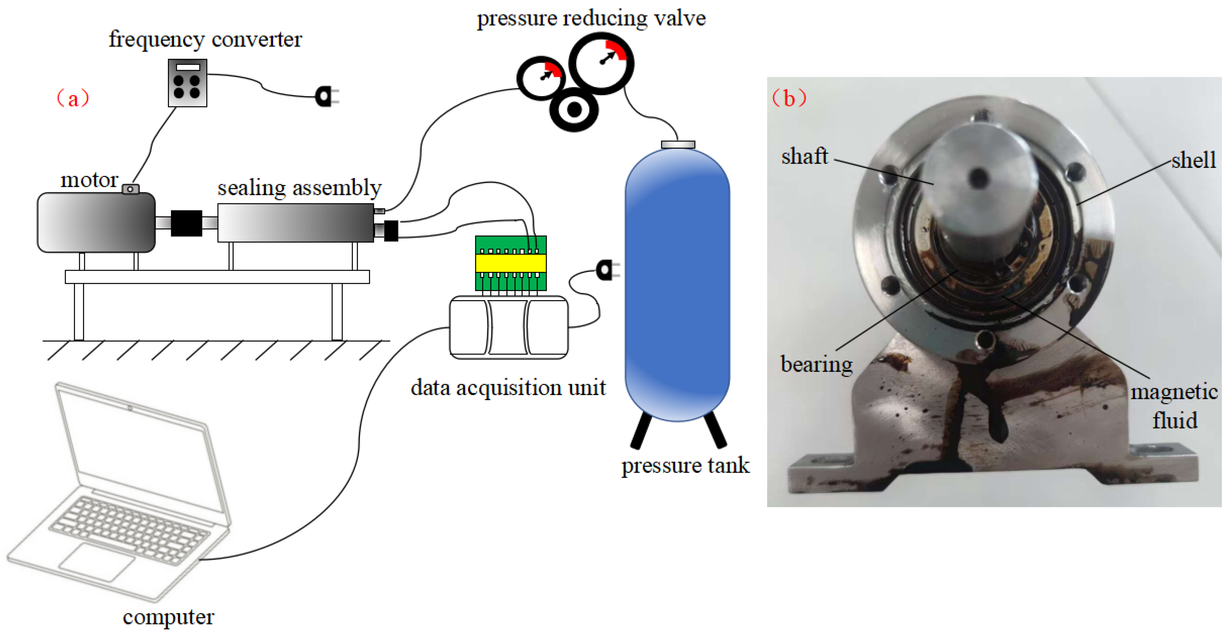 - Li, Z.; Zhu, G.; Li, X.; Li, W.; Wang, Z.; Yuan, Z. Experimental visualization of the lifetime and self-healing of magnetic fluid seals. Vacuum 2023, 216, 112399. [Google Scholar] [CrossRef]