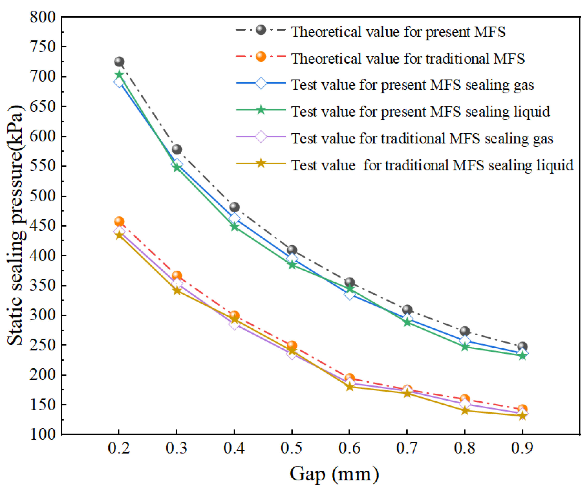 3.5.1. The Effect of Gap on Sealing Pressure