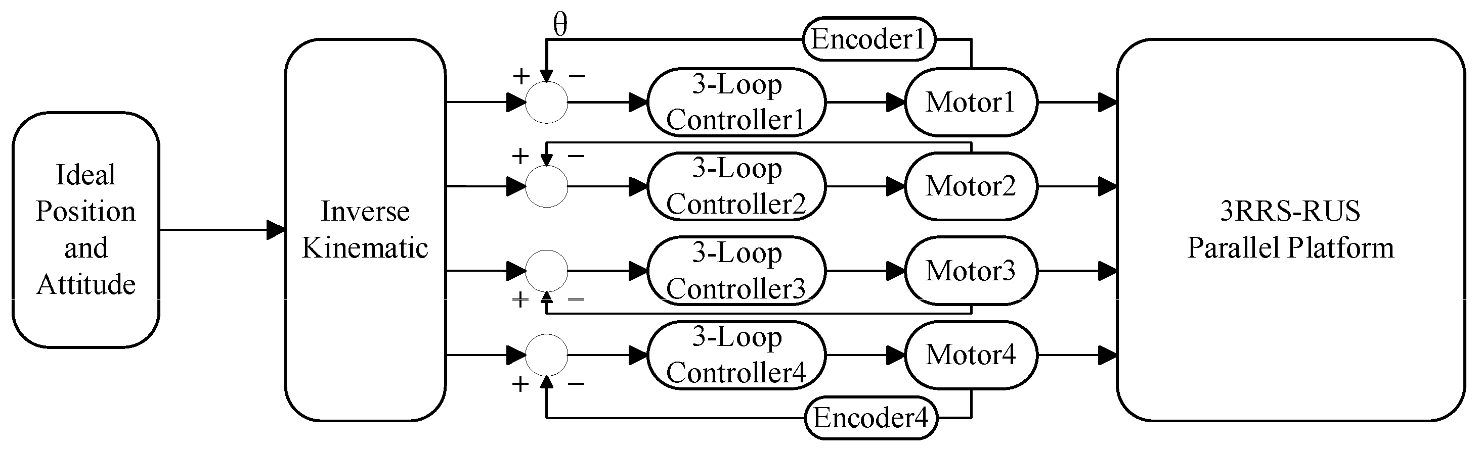 Figure 5. Control strategy for the 3RRS-RUS shipborne parallel stabilization platform.