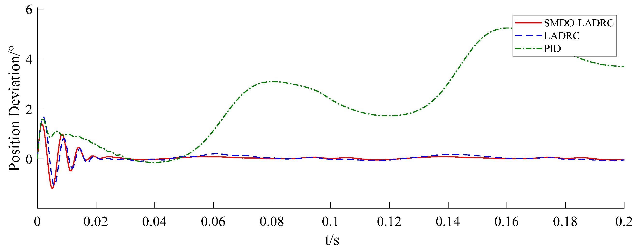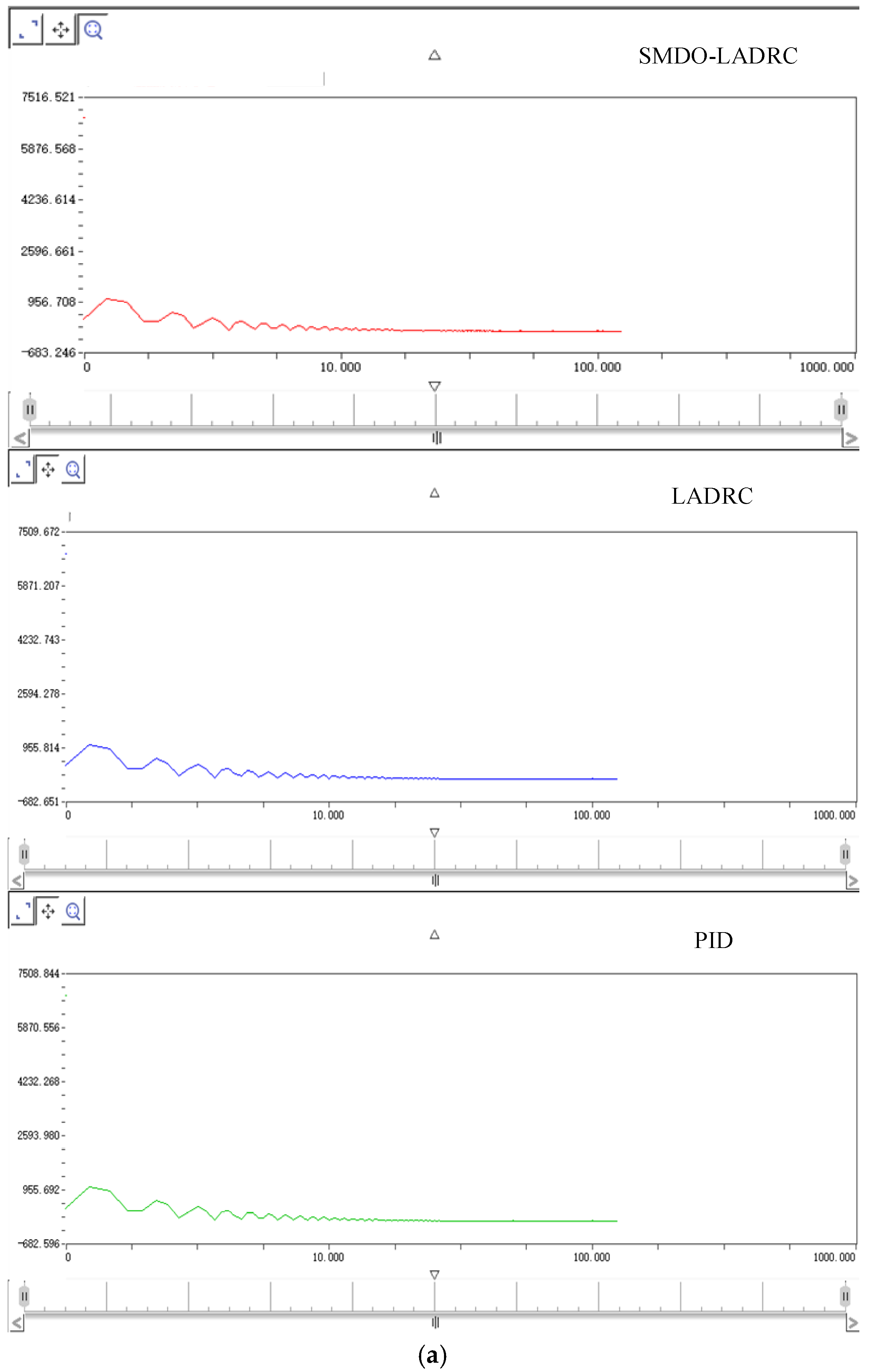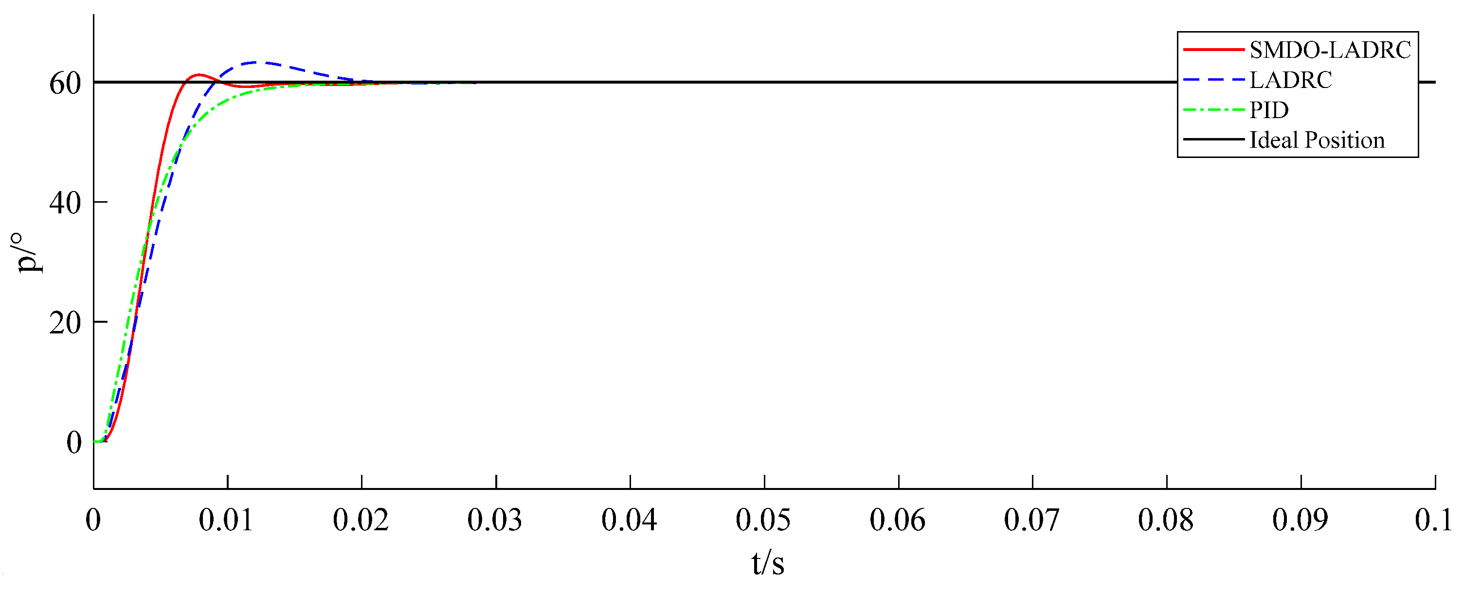 Figure 12. Position control curve. (a) SMDO–LADRC position control curve. (b) LADRC position control curve. (c) PID position Control Curve.