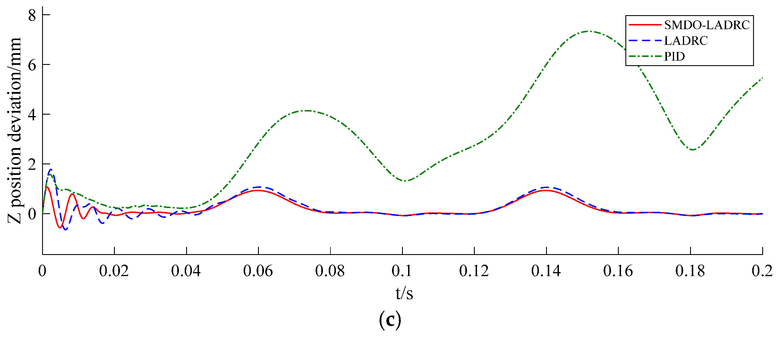 Figure 18. 3-DOF position deviation. (a) RX orientation deviation. (b) RY orientation deviation. (c) Z orientation deviation.