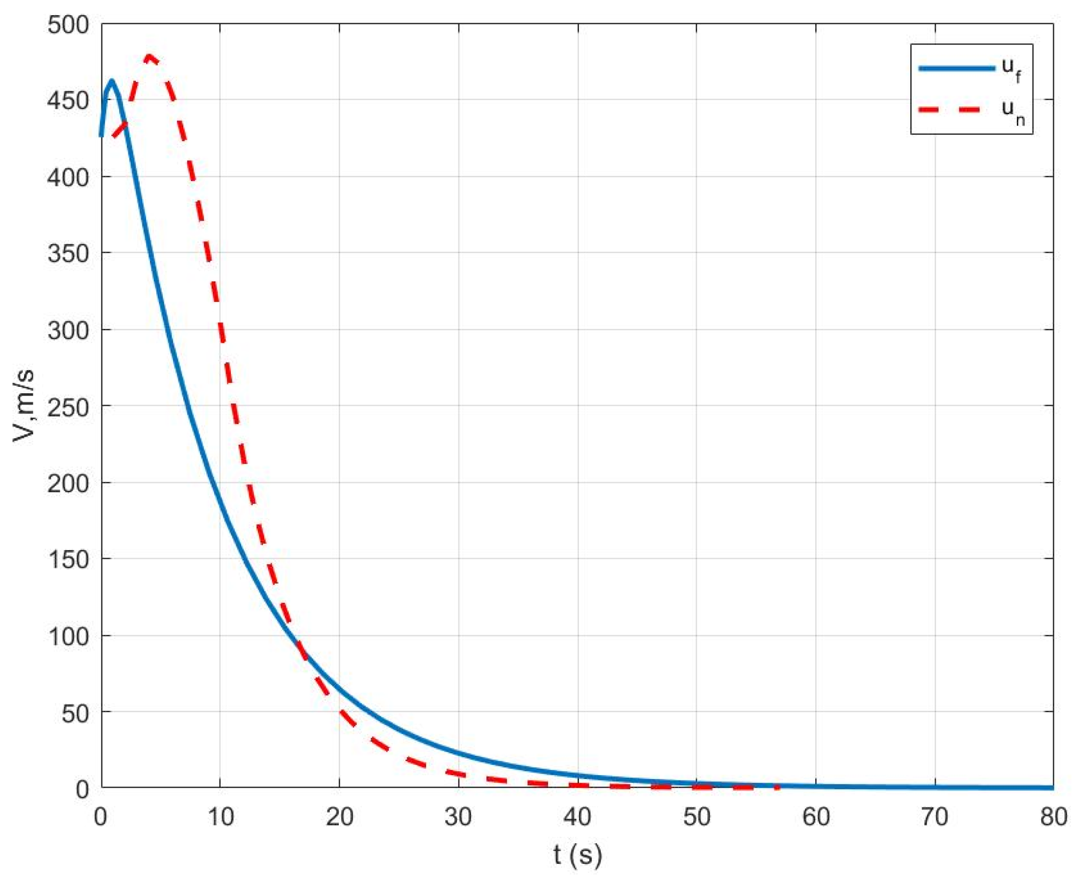 Regarding the optimization criterion (9), the control objective is to ensure that the rocket reaches the designated landing point while minimizing fuel consumption. In performance index (12), by appropriately selecting the weighting matrices  Q  and  R , the optimization criterion (9) can be effectively optimized. Therefore, the performance index (12) is reasonable.