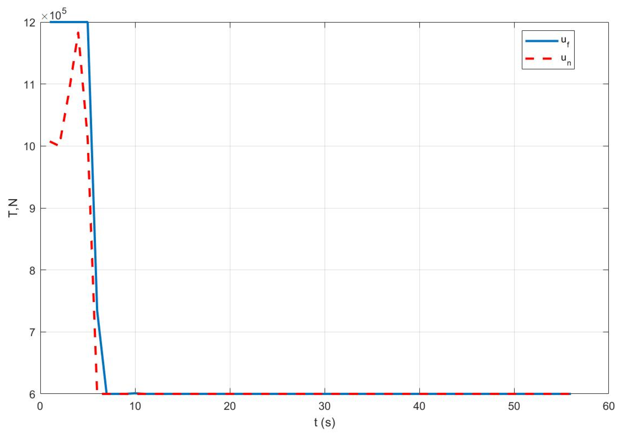 Since η ( t ) and T r are unknown, the exact form of u r cannot be determined. Considering that the optimization objective of rocket landing is to minimize fuel consumption while ensuring a stable landing, the following performance index is selected as the optimization criterion: