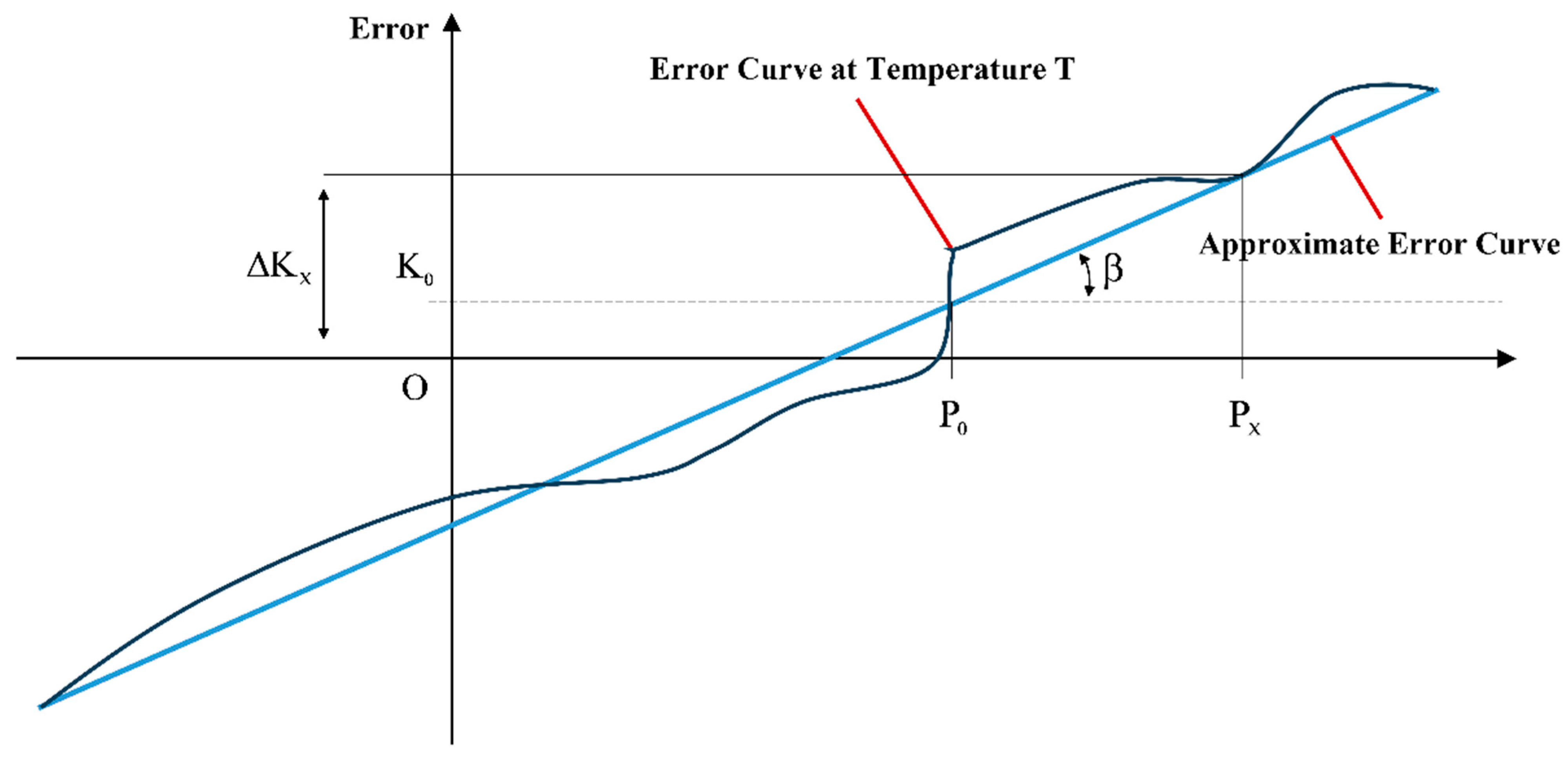 is the temperature compensation coefficient, obtained from the slope of the error curve.