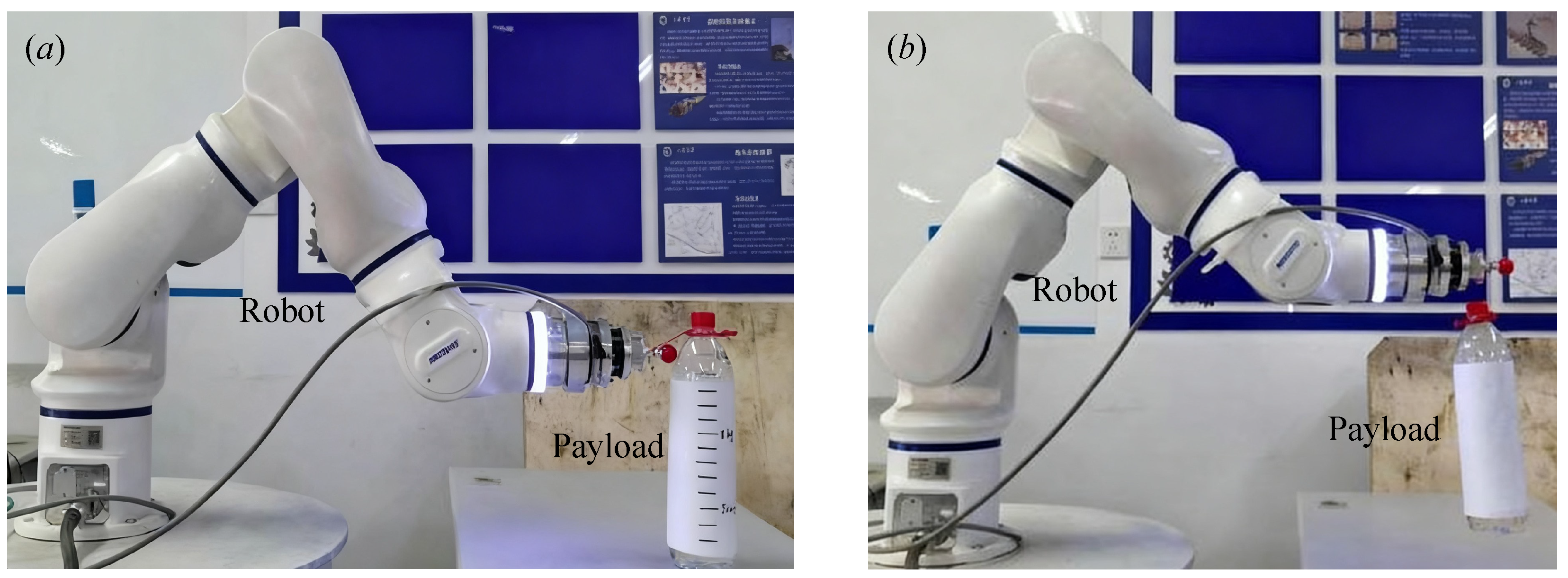 Figure 2. External load observation experiment: (a) initial state; (b) motion state.