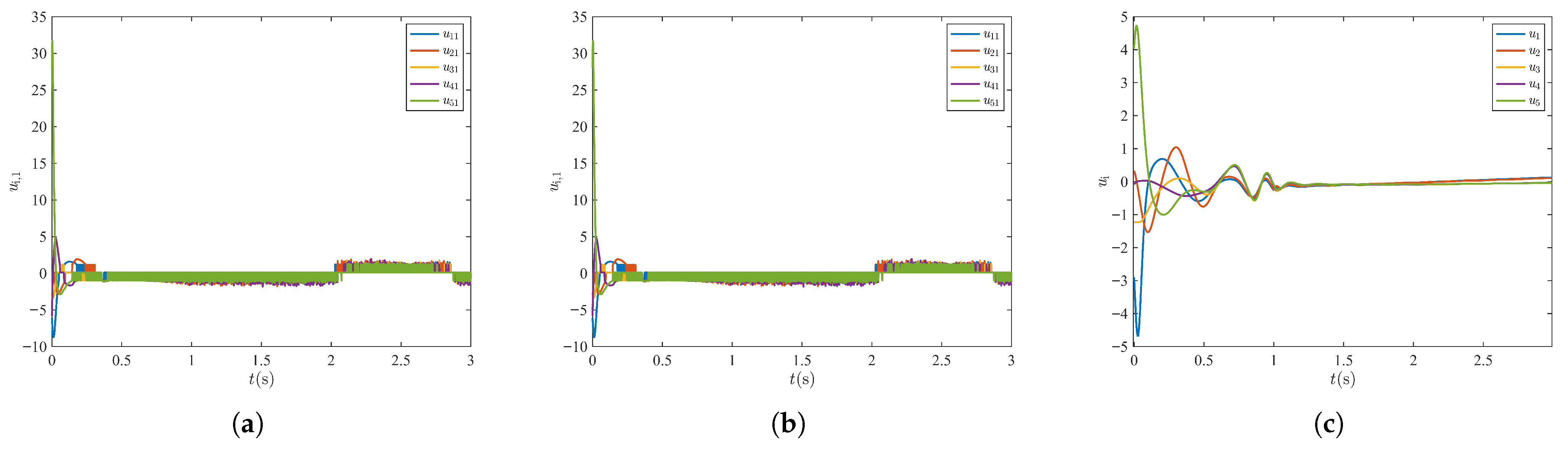 - Li, Y.; Cai, H.; Zhu, L.; Huang, Y.; Zhang, Z.; Guo, Y. Practical Prescribed-Time Consensus Tracking Control for Nonlinear Heterogeneous MASs with Bounded Time-Varying Gain under Mismatching and Non-Vanishing Uncertainties. IEEE Access 2025, 13, 28557–28573. [Google Scholar] [CrossRef]