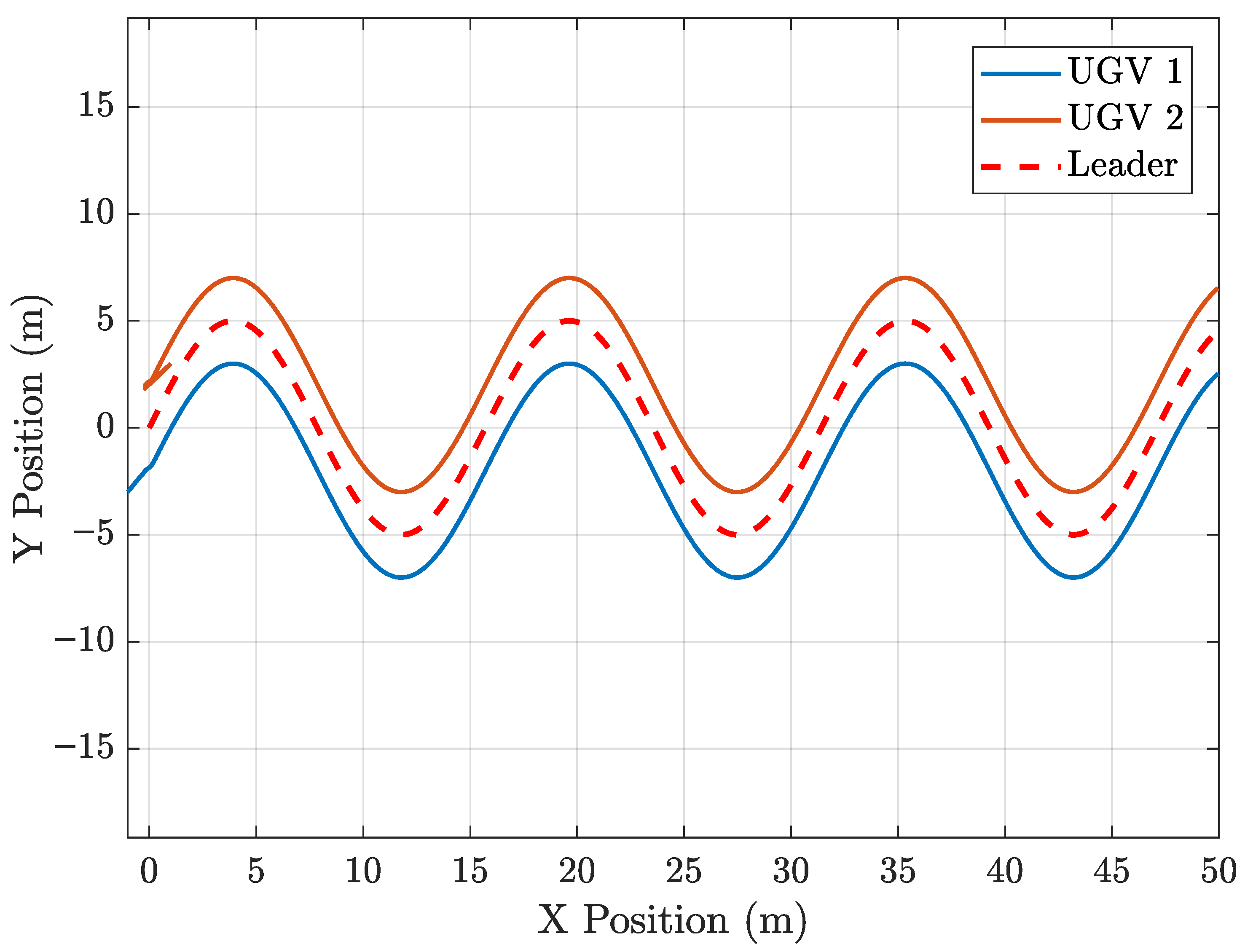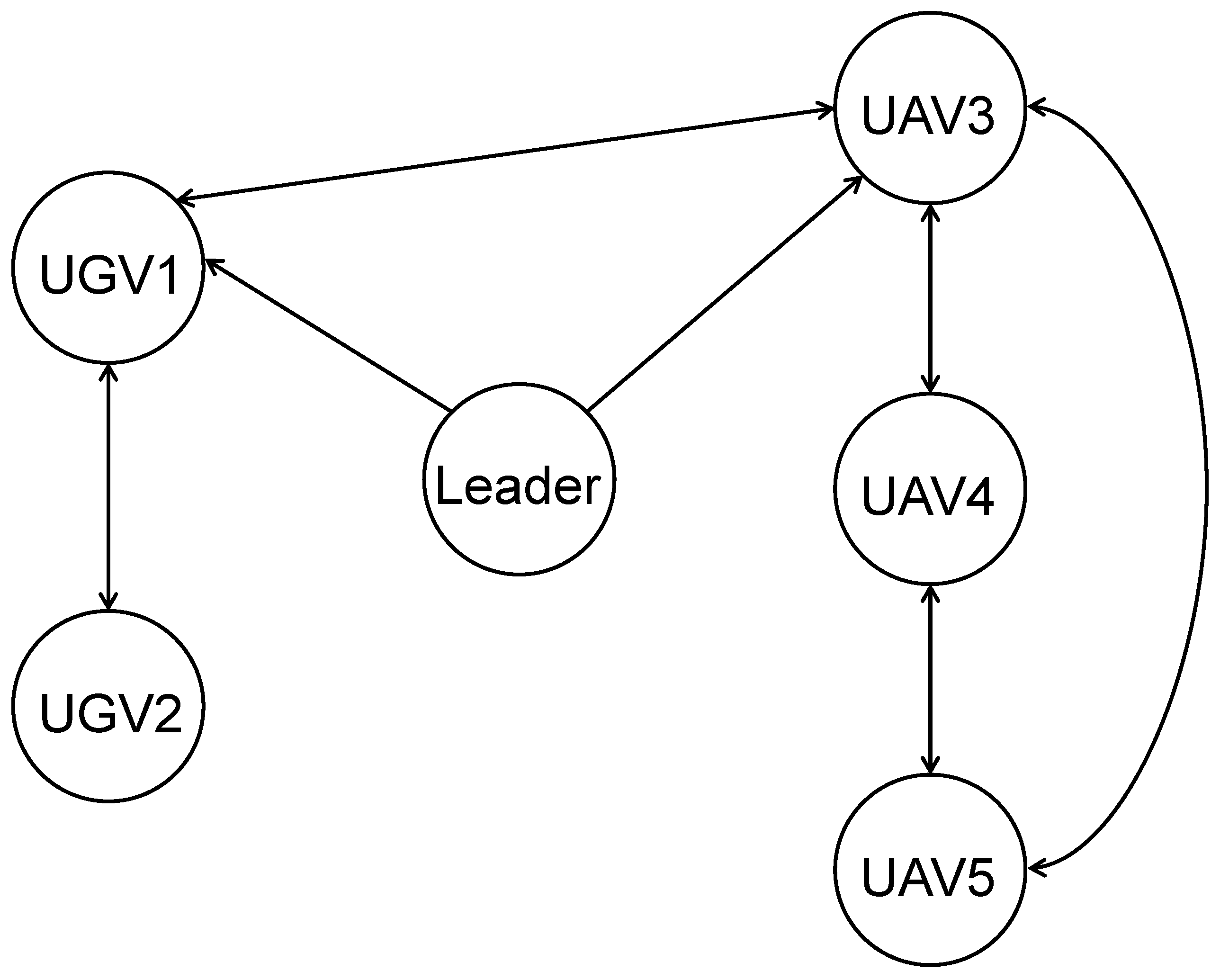 - Shi, J.L.; Hu, B.; Chen, L.; Zhang, D.X.; He, D.X.; Huang, J.; Guan, Z.H. Formation tracking of heterogeneous UGV-UAV systems with switching directed topologies. In Proceedings of the 2019 IEEE 4th International Conference on Advanced Robotics and Mechatronics (ICARM), Osaka, Japan, 3–5 July 2019; pp. 970–975. [Google Scholar] [CrossRef]