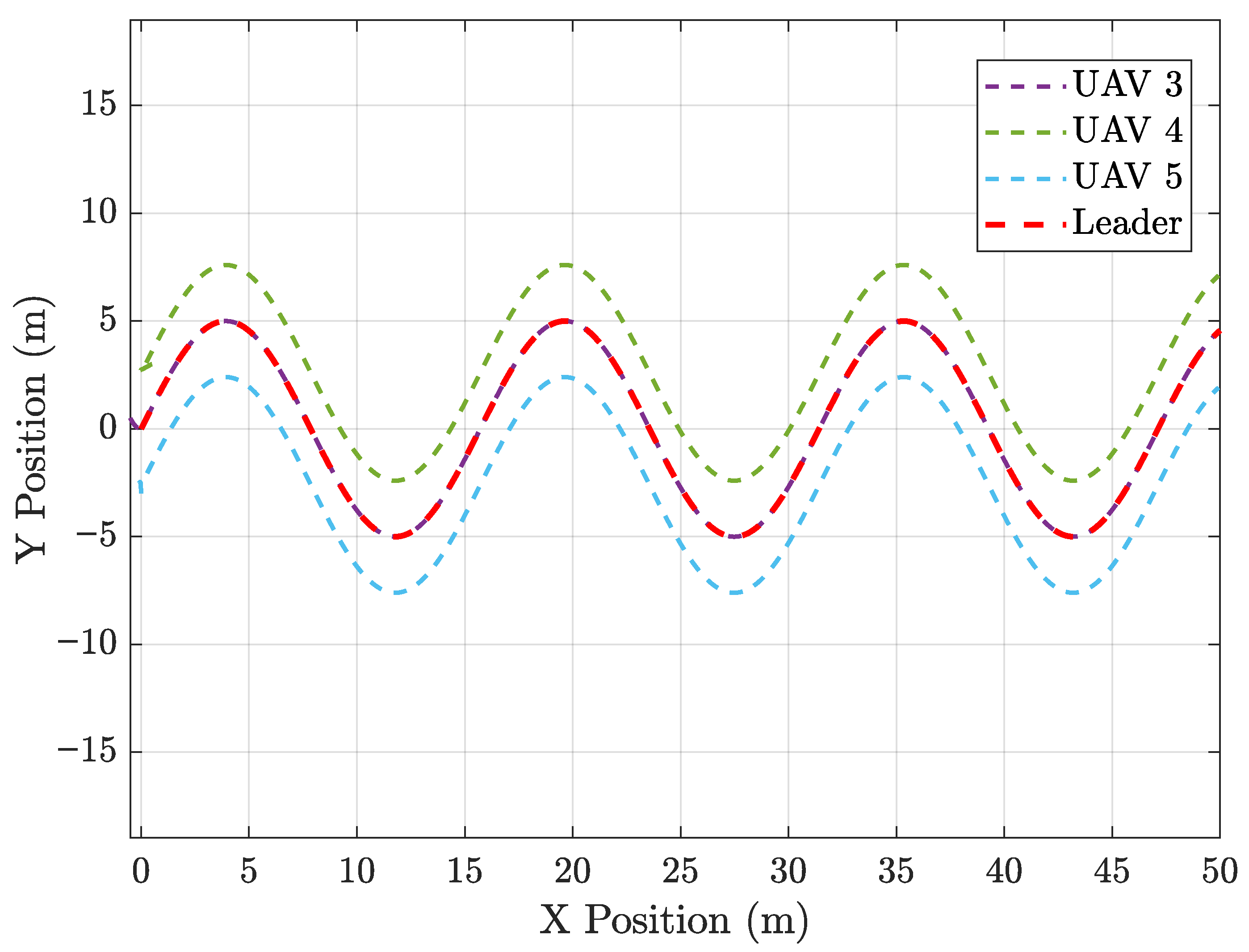 - Chang, X.; Yang, Y.; Zhang, Z.; Jiao, J.; Cheng, H.; Fu, W. Consensus-based formation control for heterogeneous multi-agent systems in complex environments. Drones 2025, 9, 175. [Google Scholar] [CrossRef]