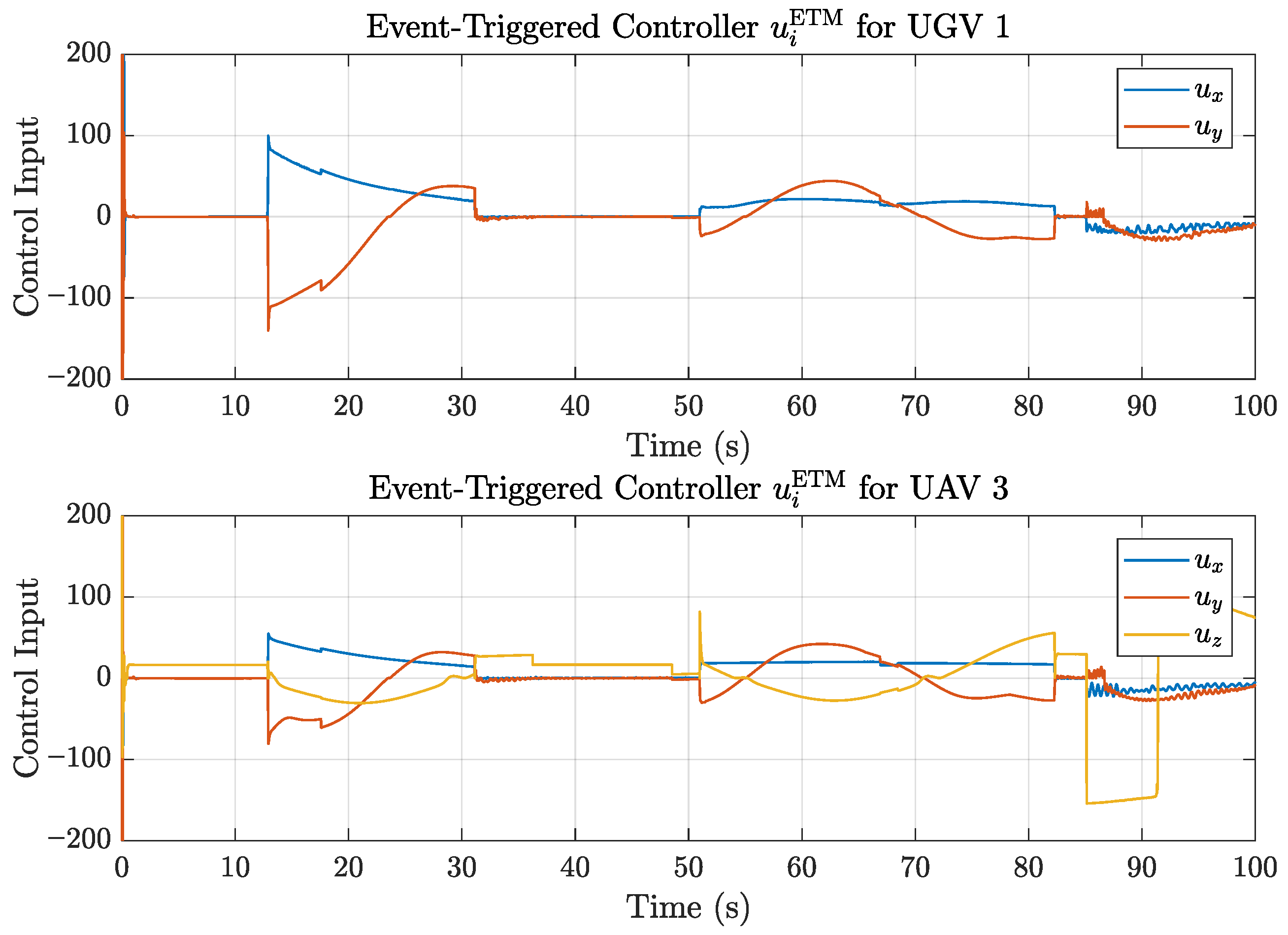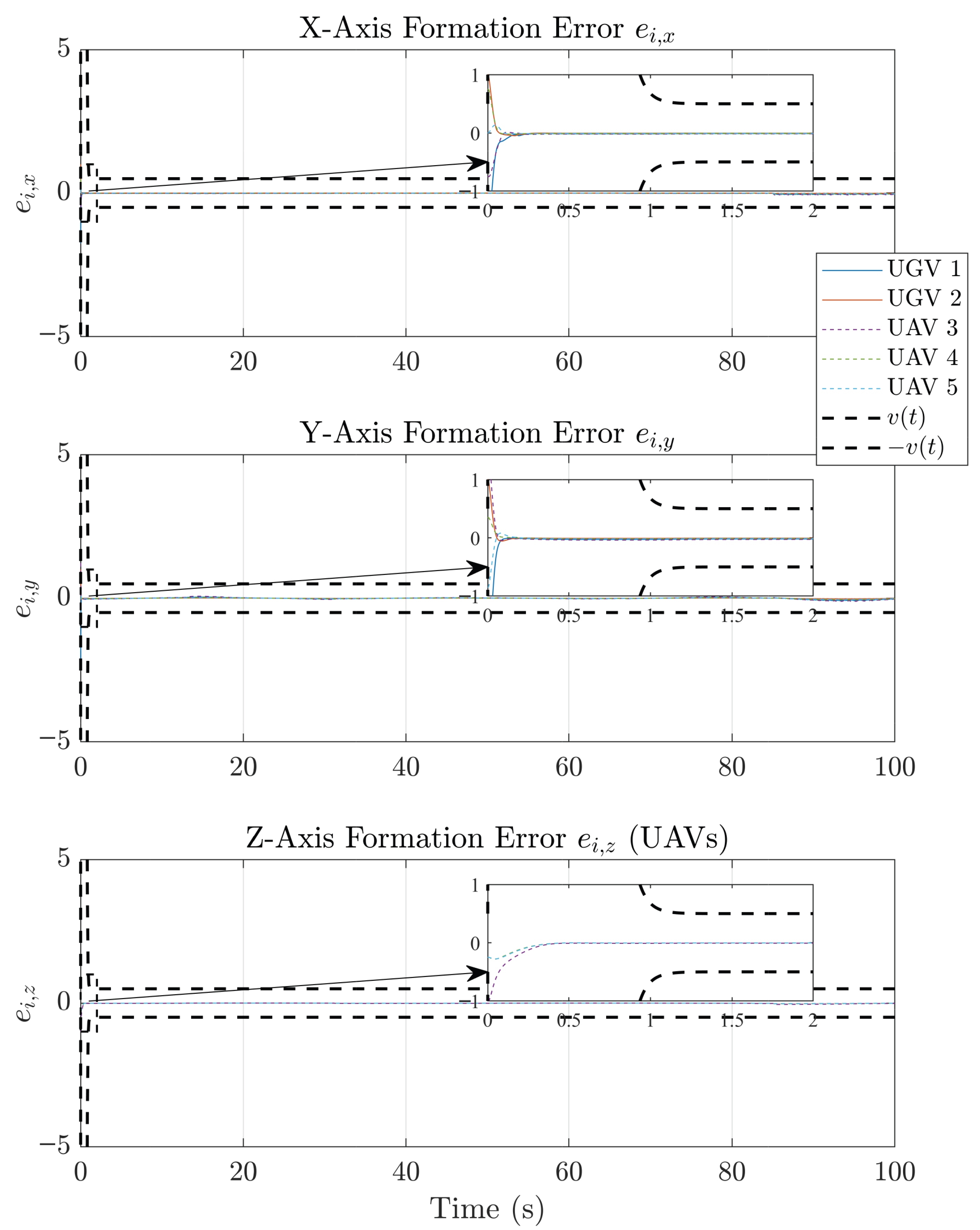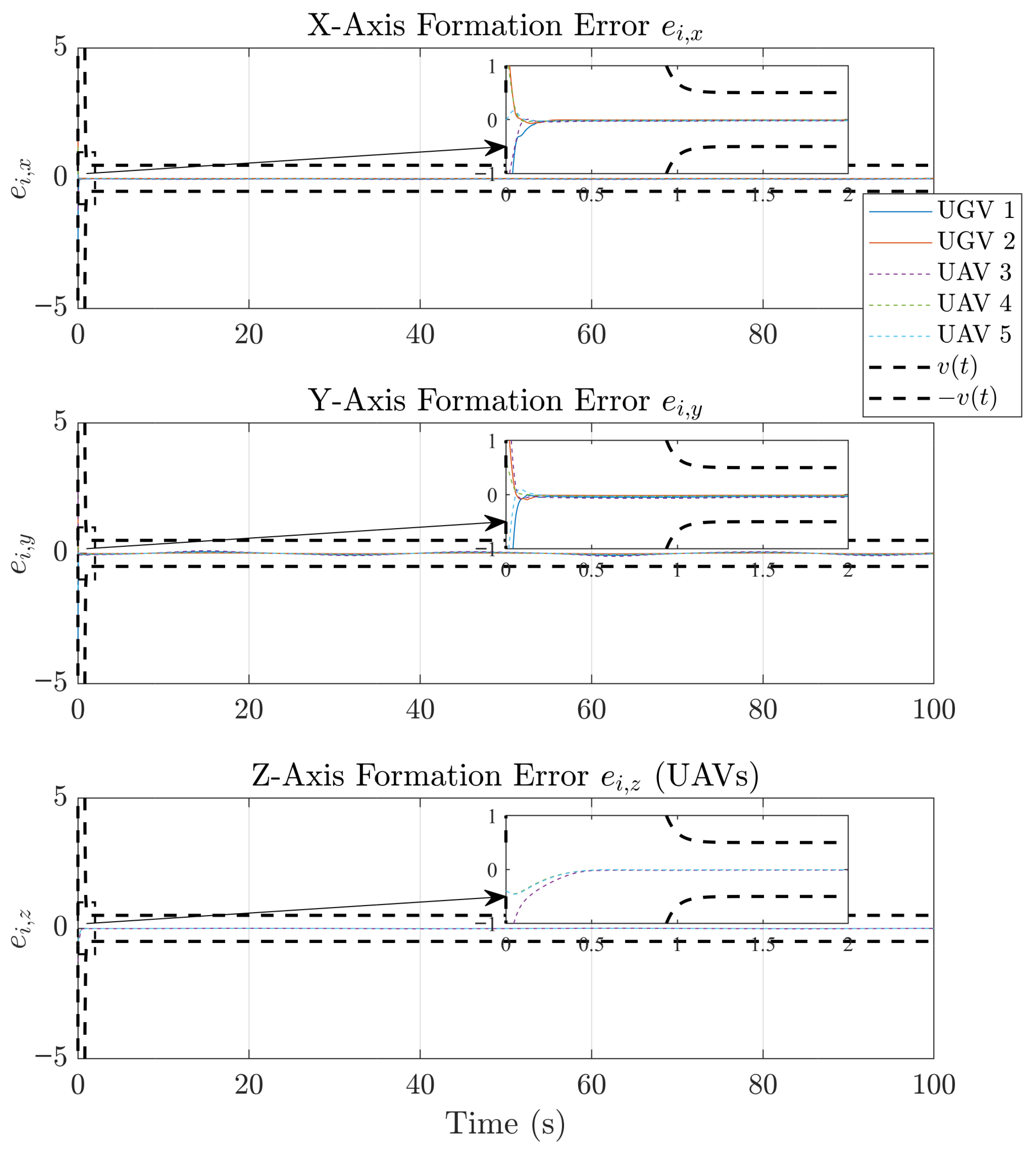 Chicago/Turabian StyleHuang, Jingli, Junjiang Xie, Jie Huang, and Shangkun Liu. 2025. "Prescribed-Time, Event-Triggered, Adaptive, Fault-Tolerant Formation Control of Heterogeneous Air–Ground Multi-Agent Systems Under Deception Attacks and Actuator Faults" Actuators 14, no. 12: 575. https://doi.org/10.3390/act14120575