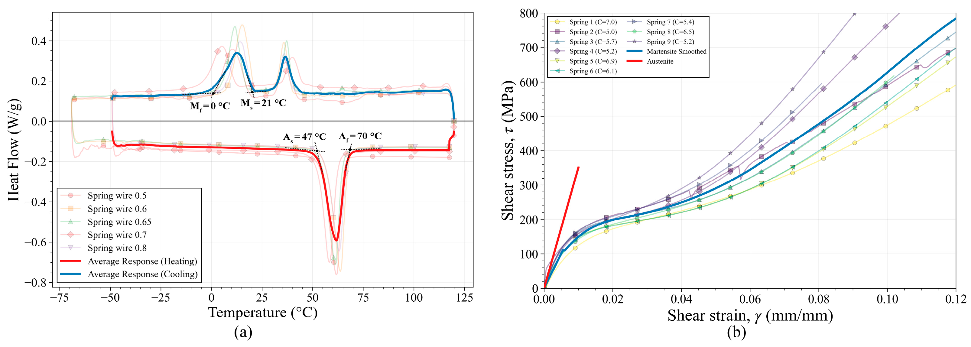 - An, S.M.; Ryu, J.; Cho, M.; Cho, K.J. Engineering design framework for a shape memory alloy coil spring actuator using a static two-state model. Smart Mater. Struct. 2012, 21, 055009. [Google Scholar] [CrossRef]