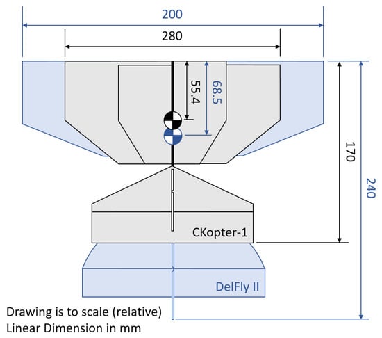Size comparison between DelFly II and CKopter-1. The DelFly II is scaled according to data from [32].