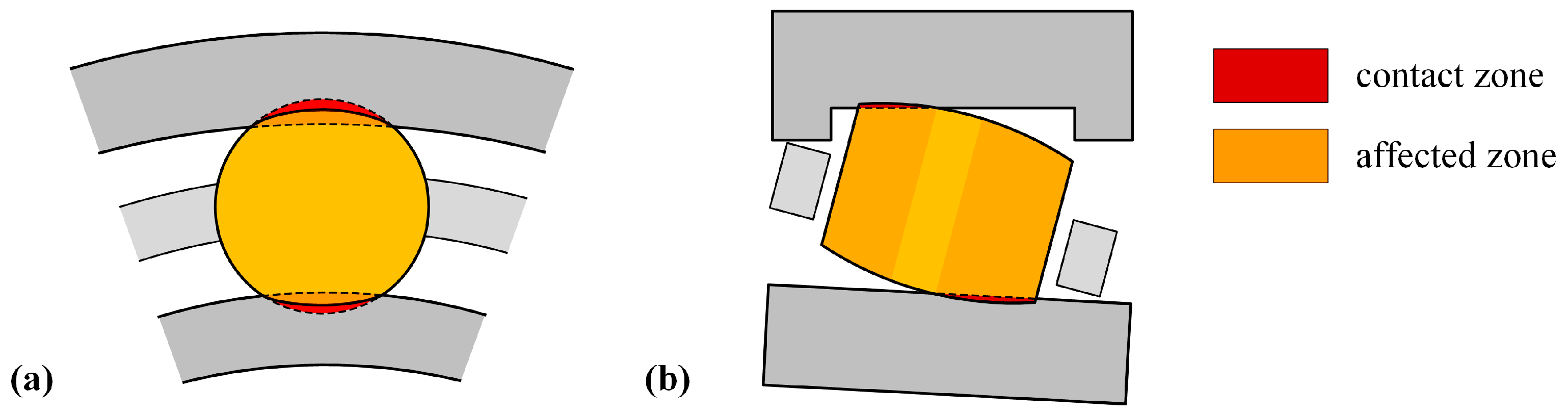 - Jiang, Z.; Huang, X.; Zheng, Z.; Ding, P.; Hao, J. Transient Characteristics of Misaligned Roller Bearing Considering Thermal-fluid-Solid Coupled. Tribol. Int. 2024, 196, 109693. [Google Scholar] [CrossRef]