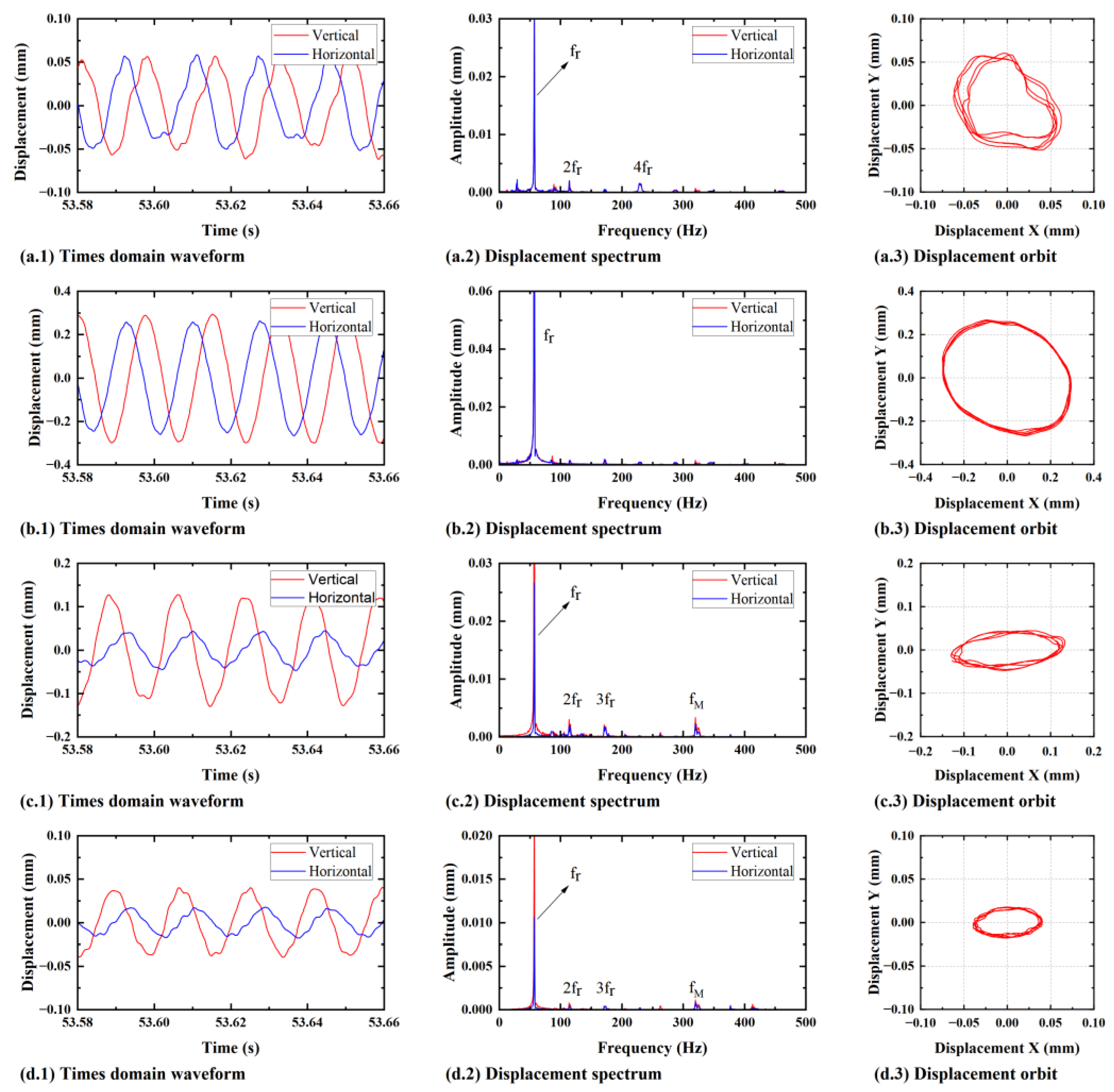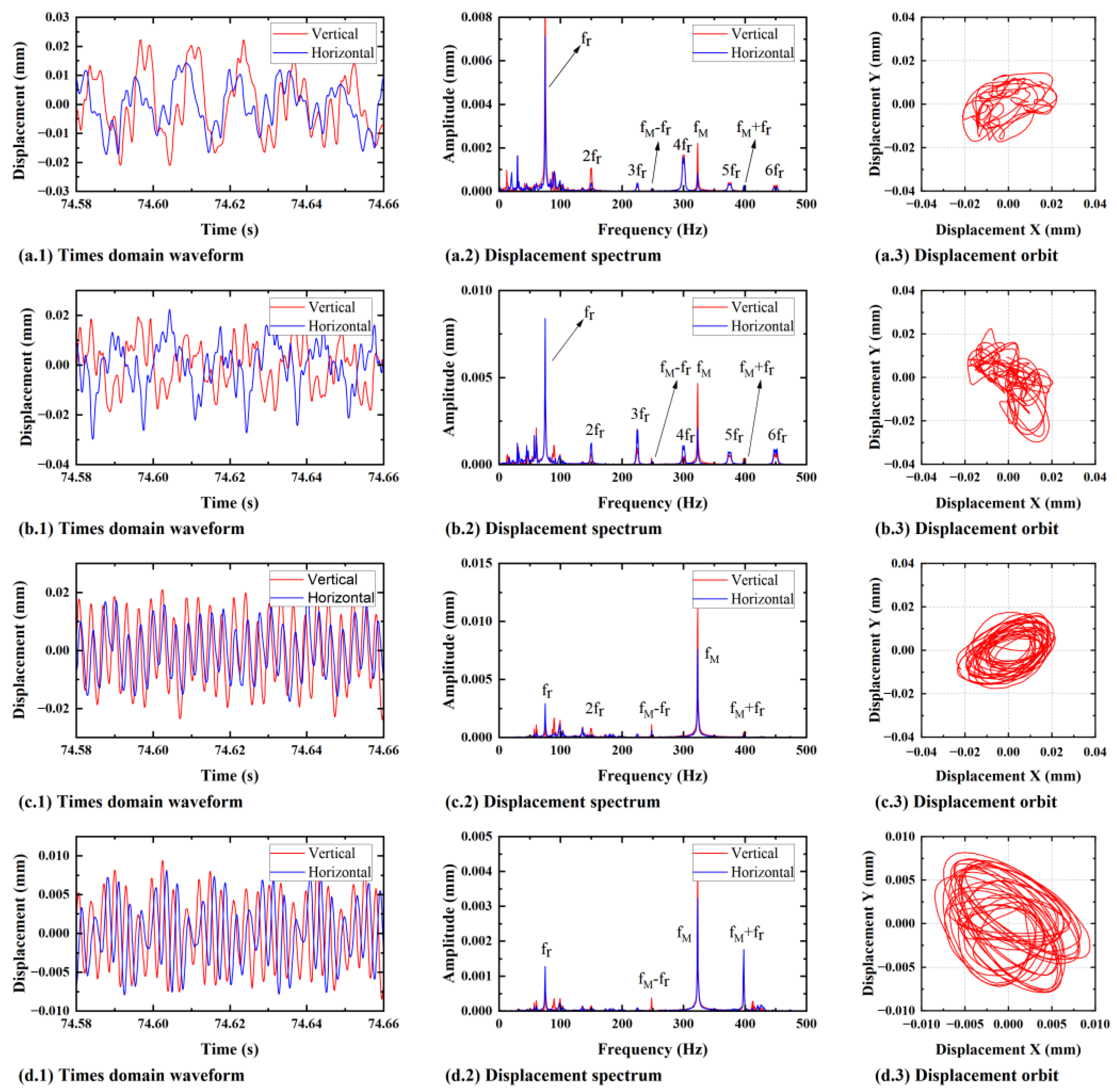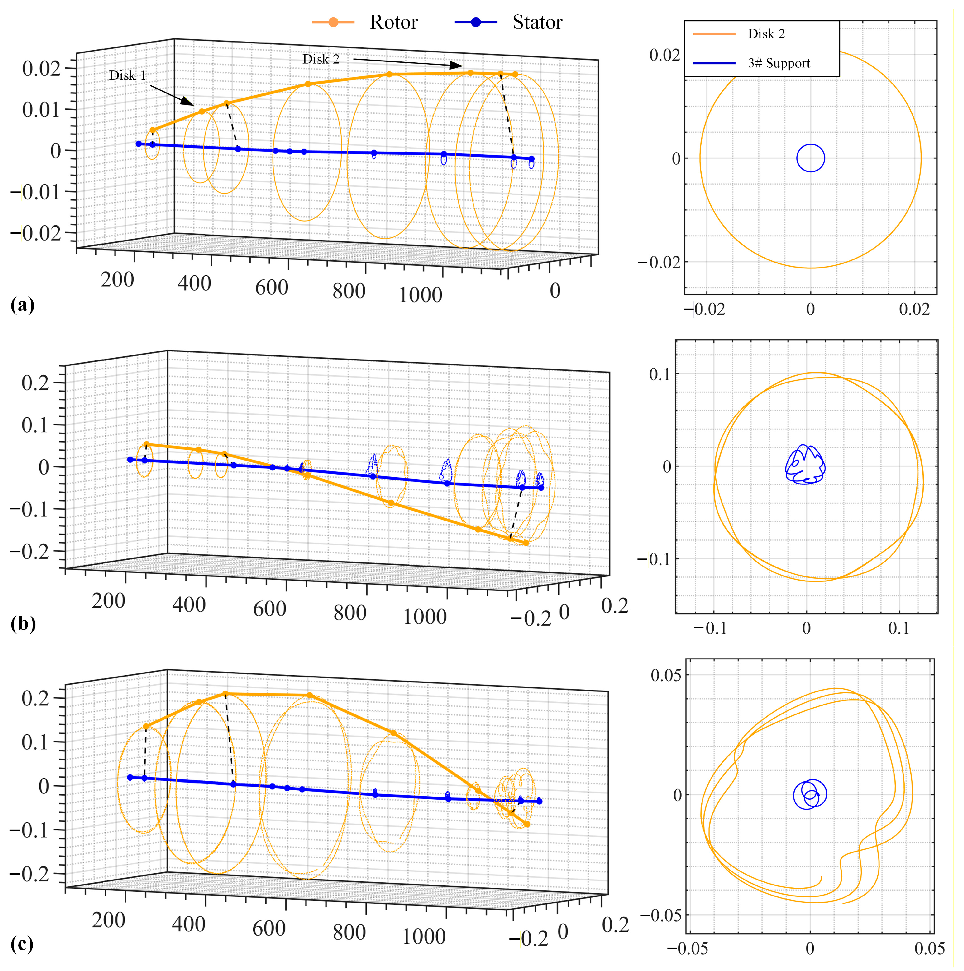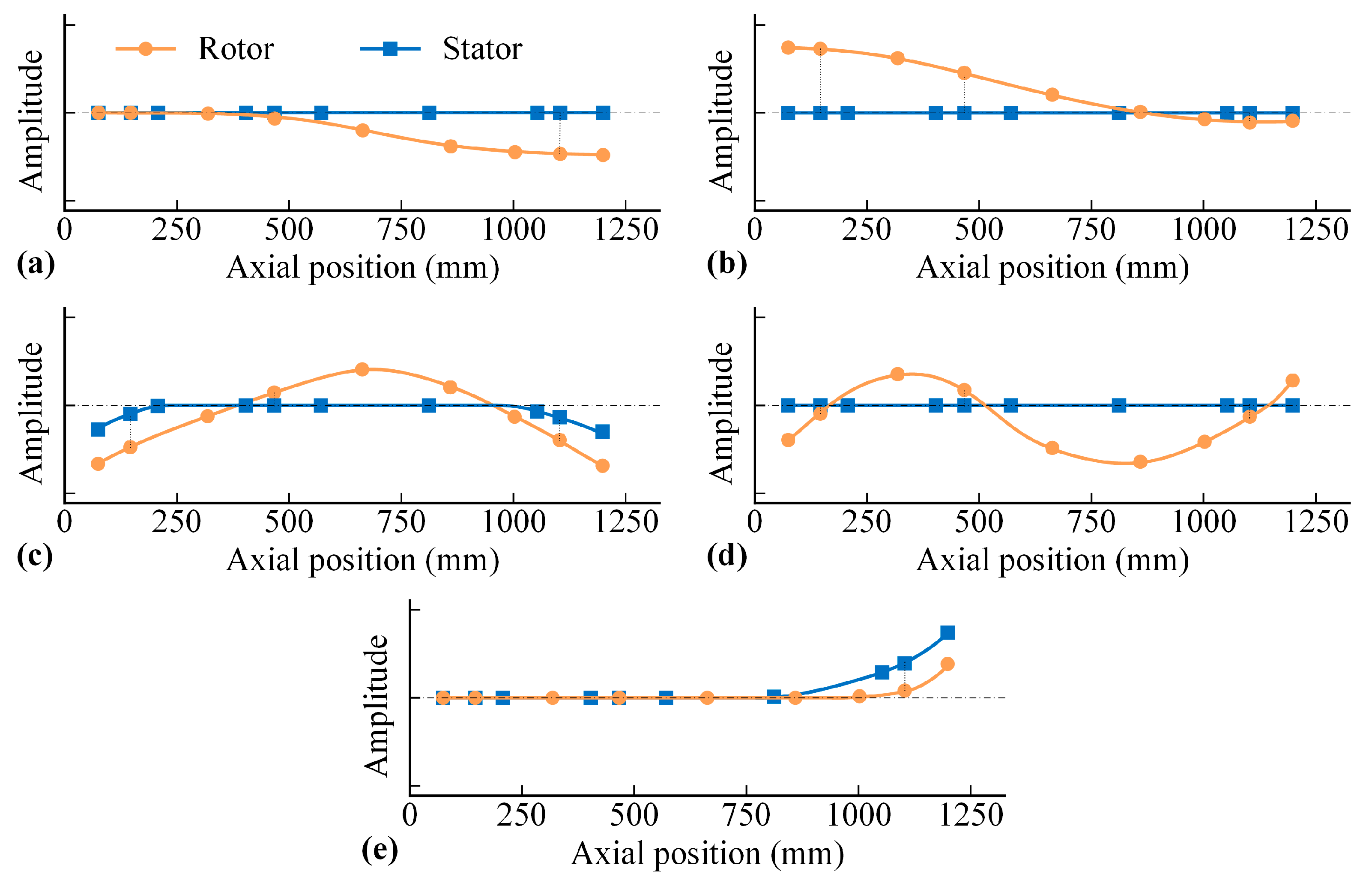 4.1. Dynamic Characteristics of the Rotor–Stator System
