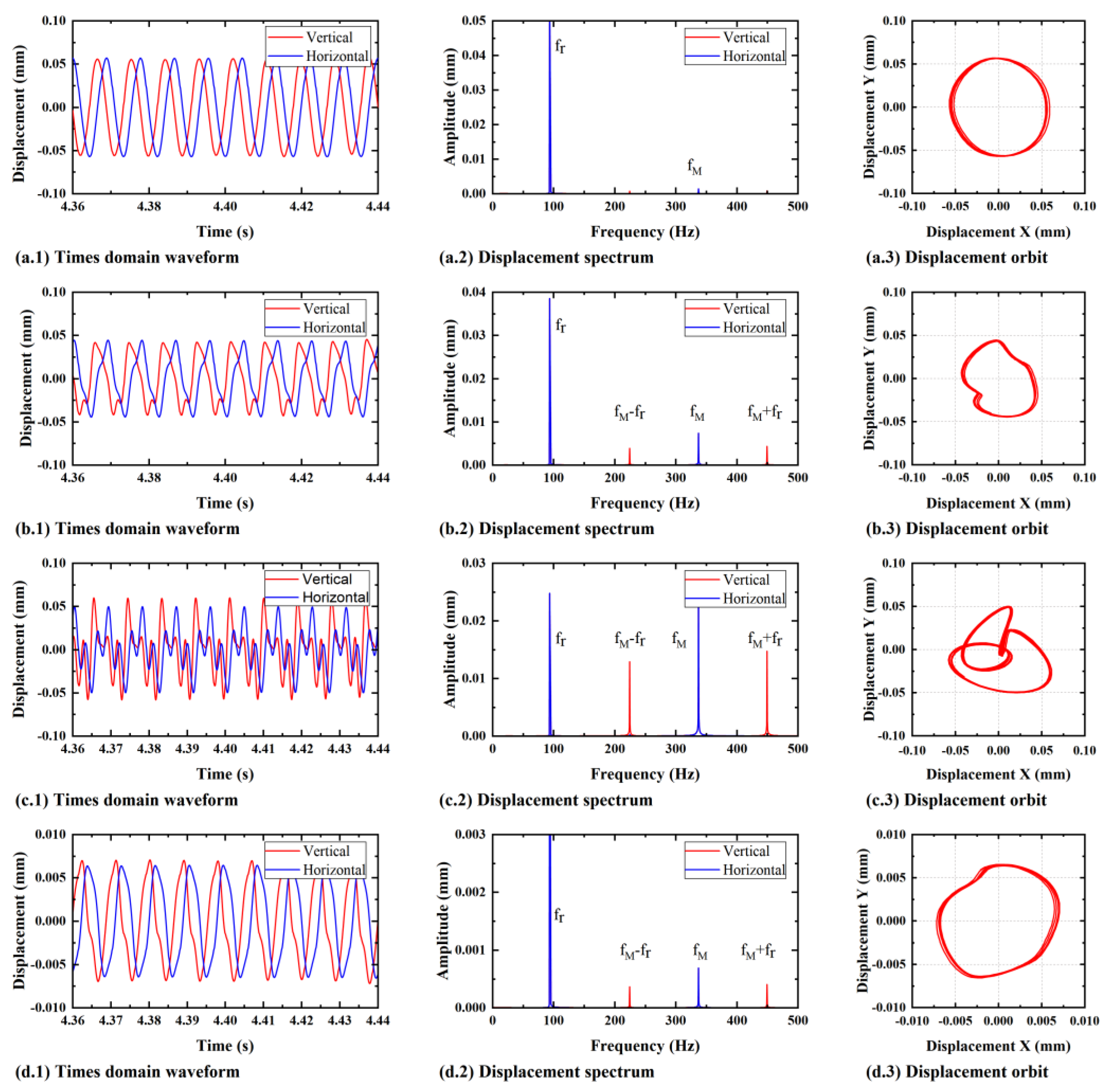 - Yang, Z.; Hong, J.; Wang, D.; Cheng, R.; Ma, Y. Vibration Analysis of Rotor Systems with Bearing Clearance Using a Novel Conformal Contact Model. Nonlinear Dyn. 2024, 112, 7951–7976. [Google Scholar] [CrossRef]