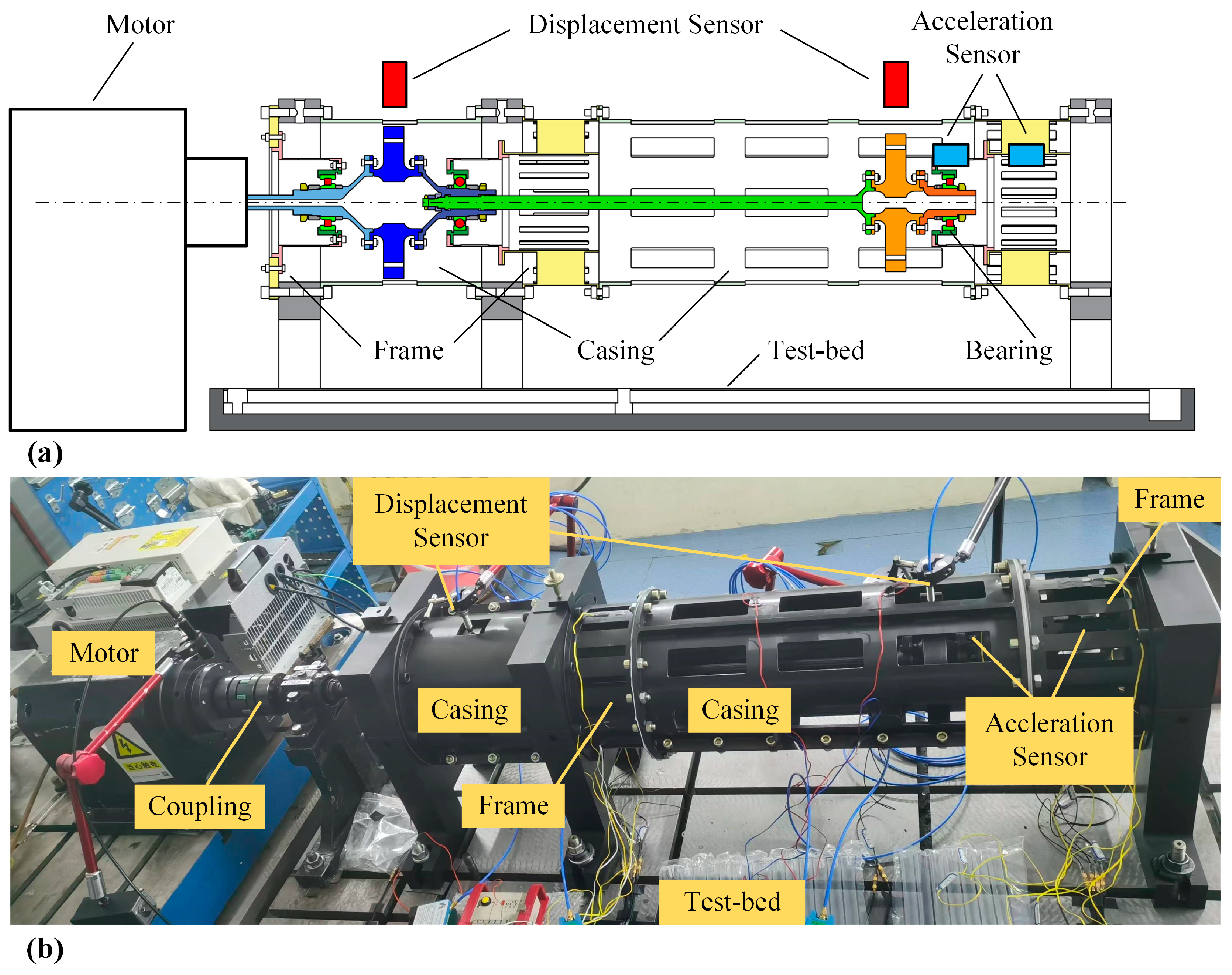 - Guan, H.; Wang, P.; Xiong, Q.; Ma, H.; Zhou, S.; Mu, Q.; Zeng, Y.; Chen, Y. Modeling of Misaligned Bearing Induced by Coupling Misalignment and Assembly Errors and Vibration Analysis in Dual-Rotor System. Mech. Syst. Signal Process. 2025, 230, 112656. [Google Scholar] [CrossRef]