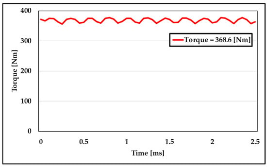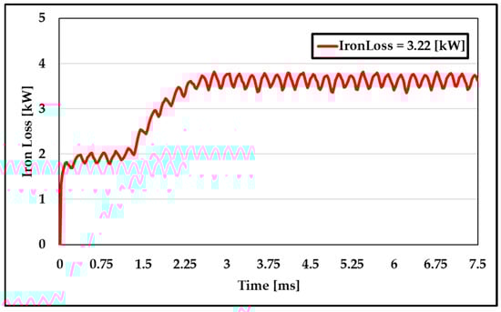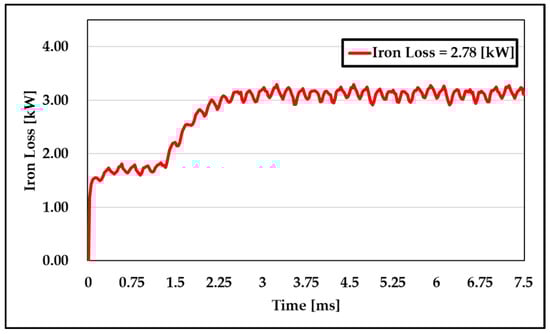 The efficiency, torque, and iron loss optimized by the ANN were compared with those of the baseline design. Figure 14 presents the optimized torque results, and Figure 15 shows the iron loss comparison. The pre- and post-optimization motor parameters and performances are summarized in Table 5.