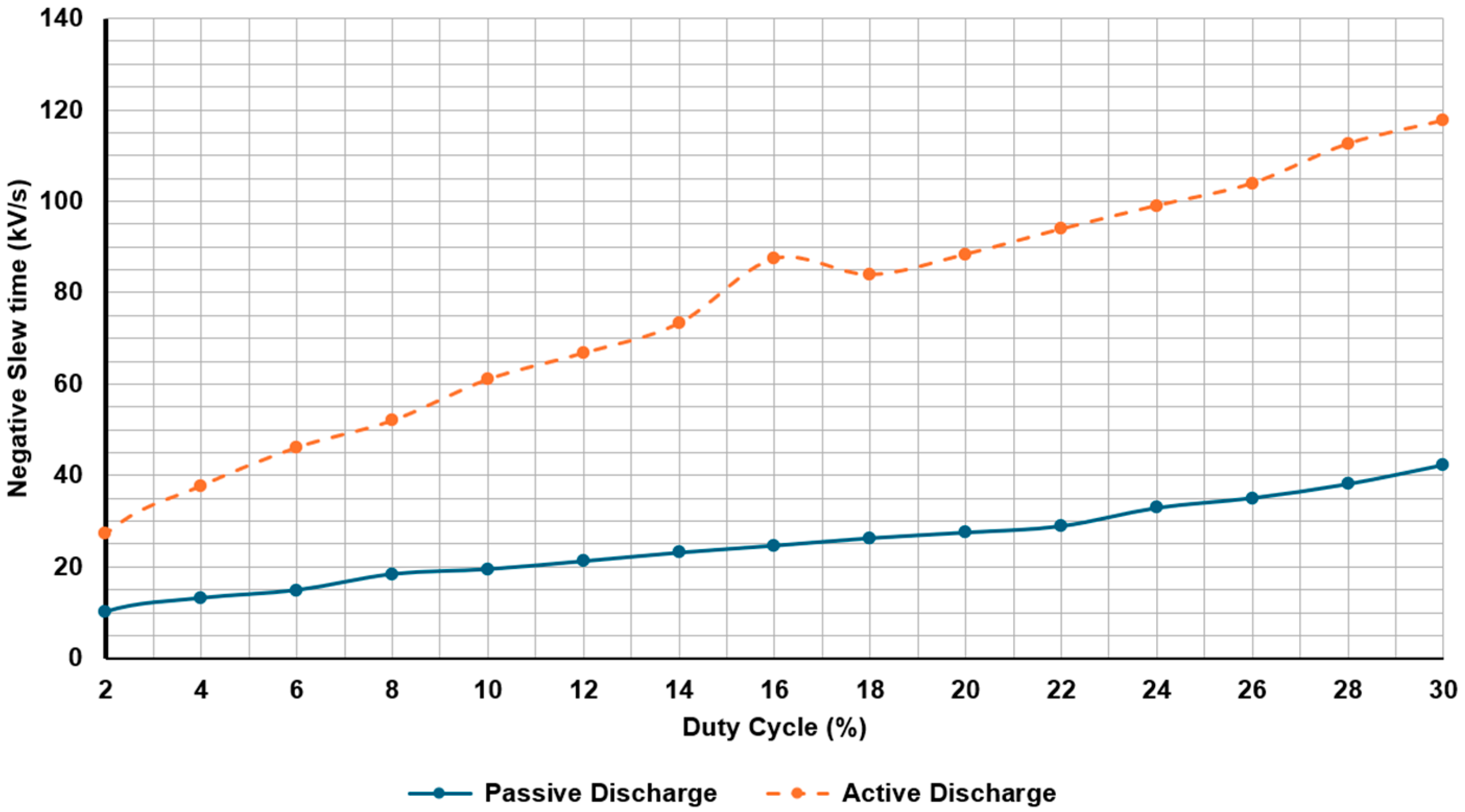 | Duty Cycle (%) | Rise Time (ms) | Fall Time (ms) | Rise Time (ms) | Fall Time (ms) |