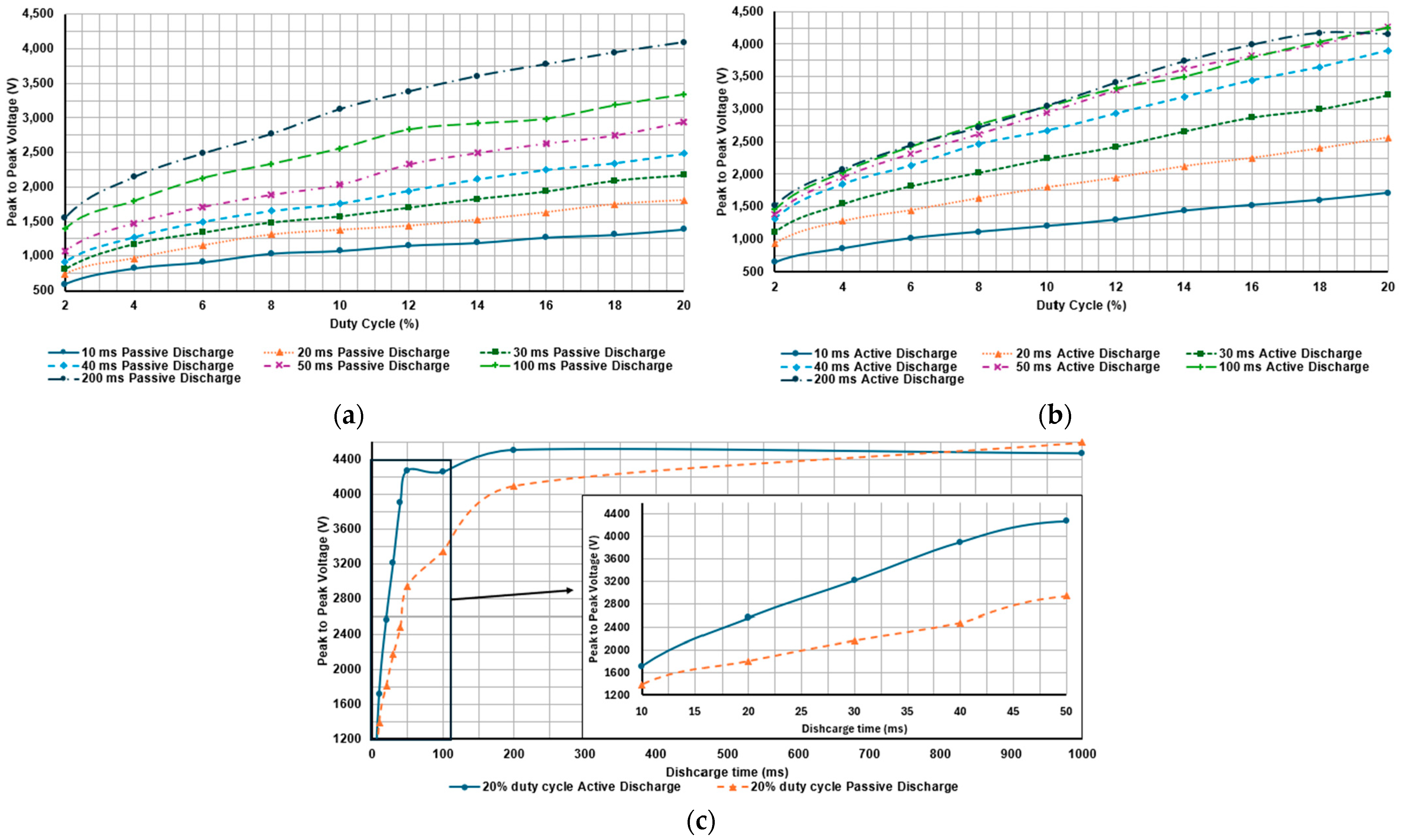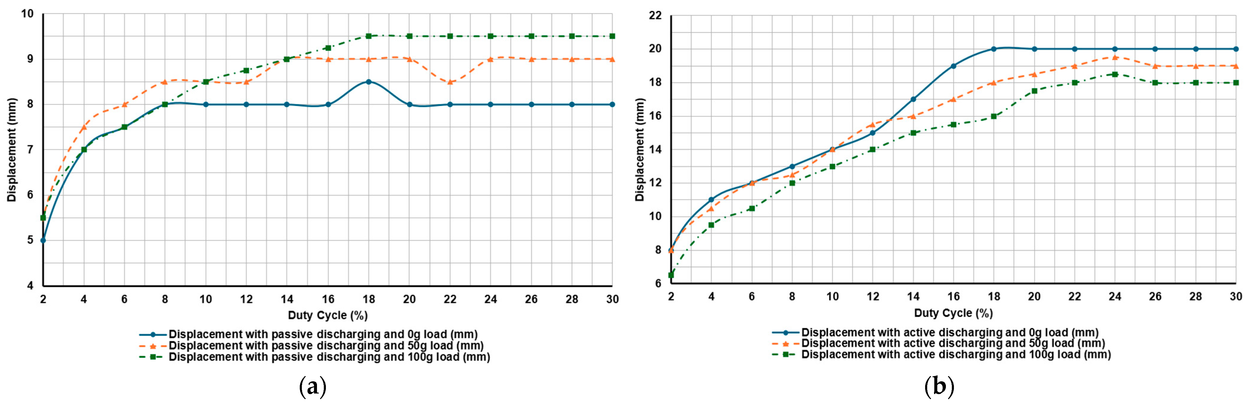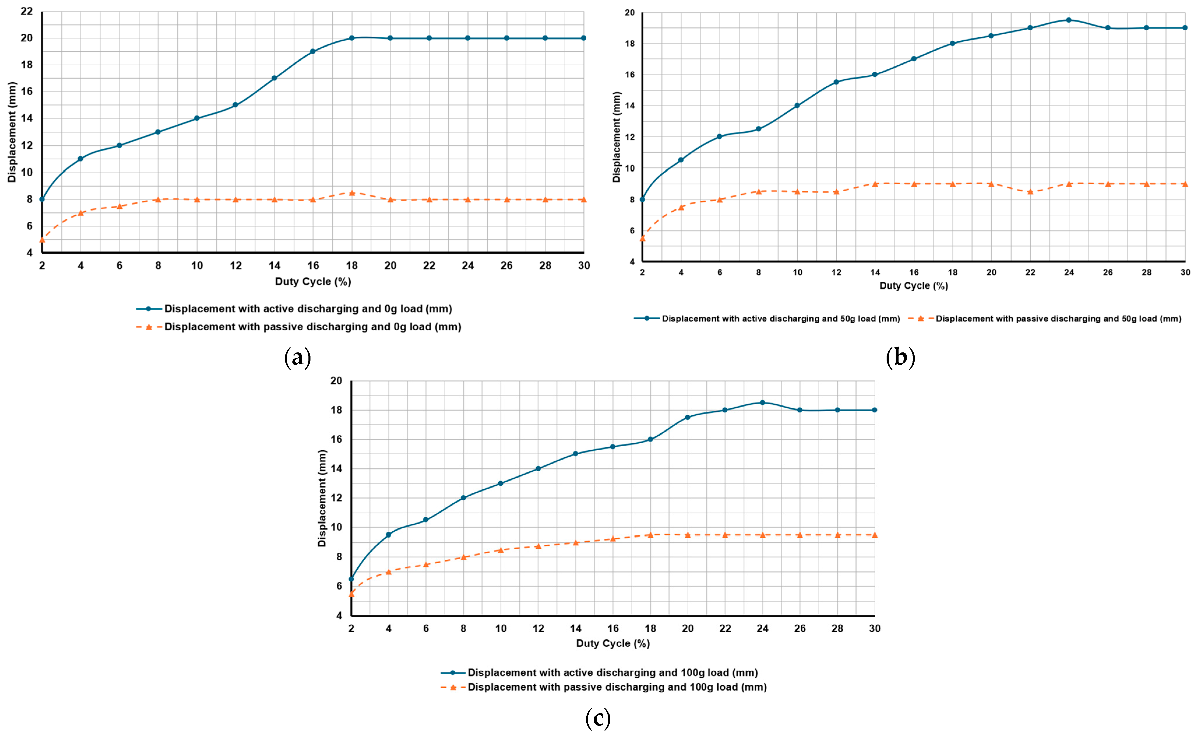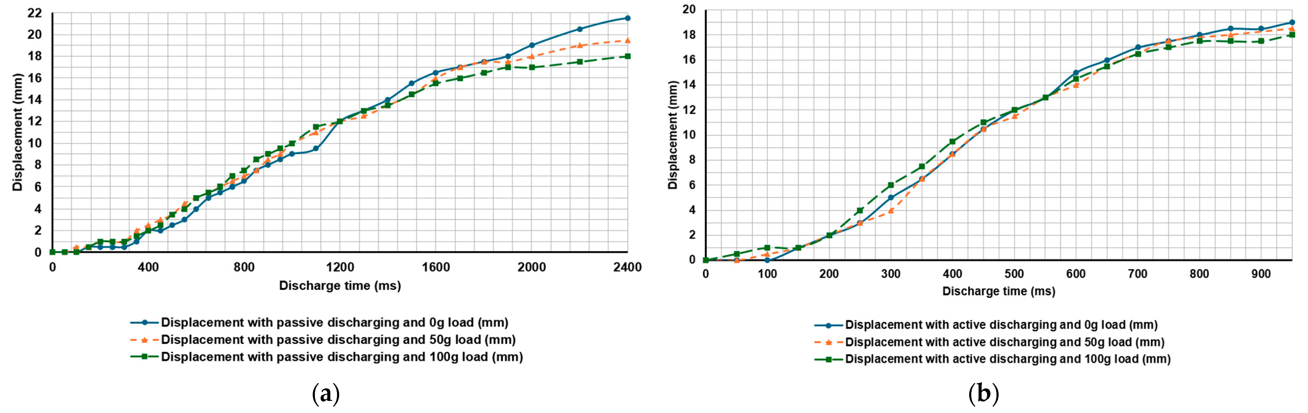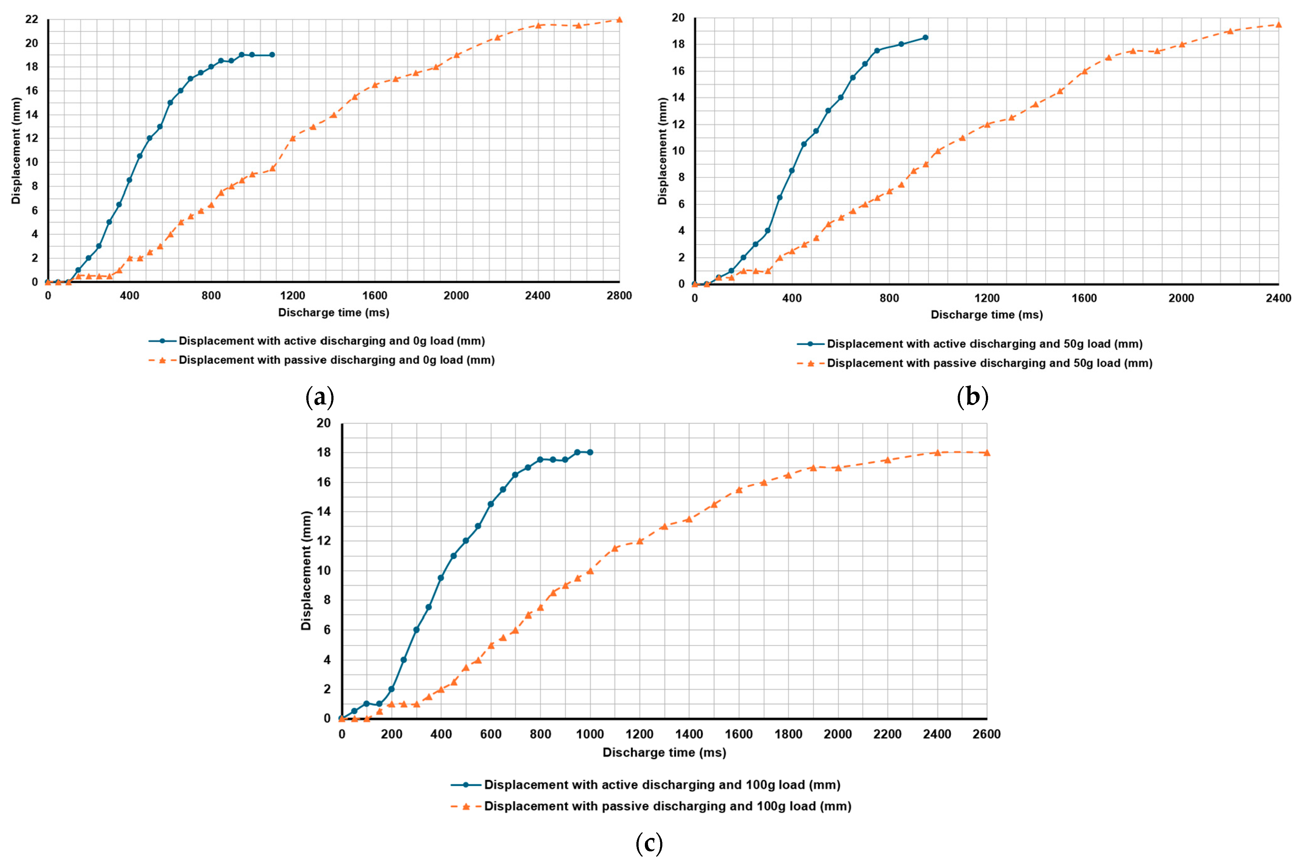 4.2. Passive and Active Discharge Comparison with the HASEL Actuator