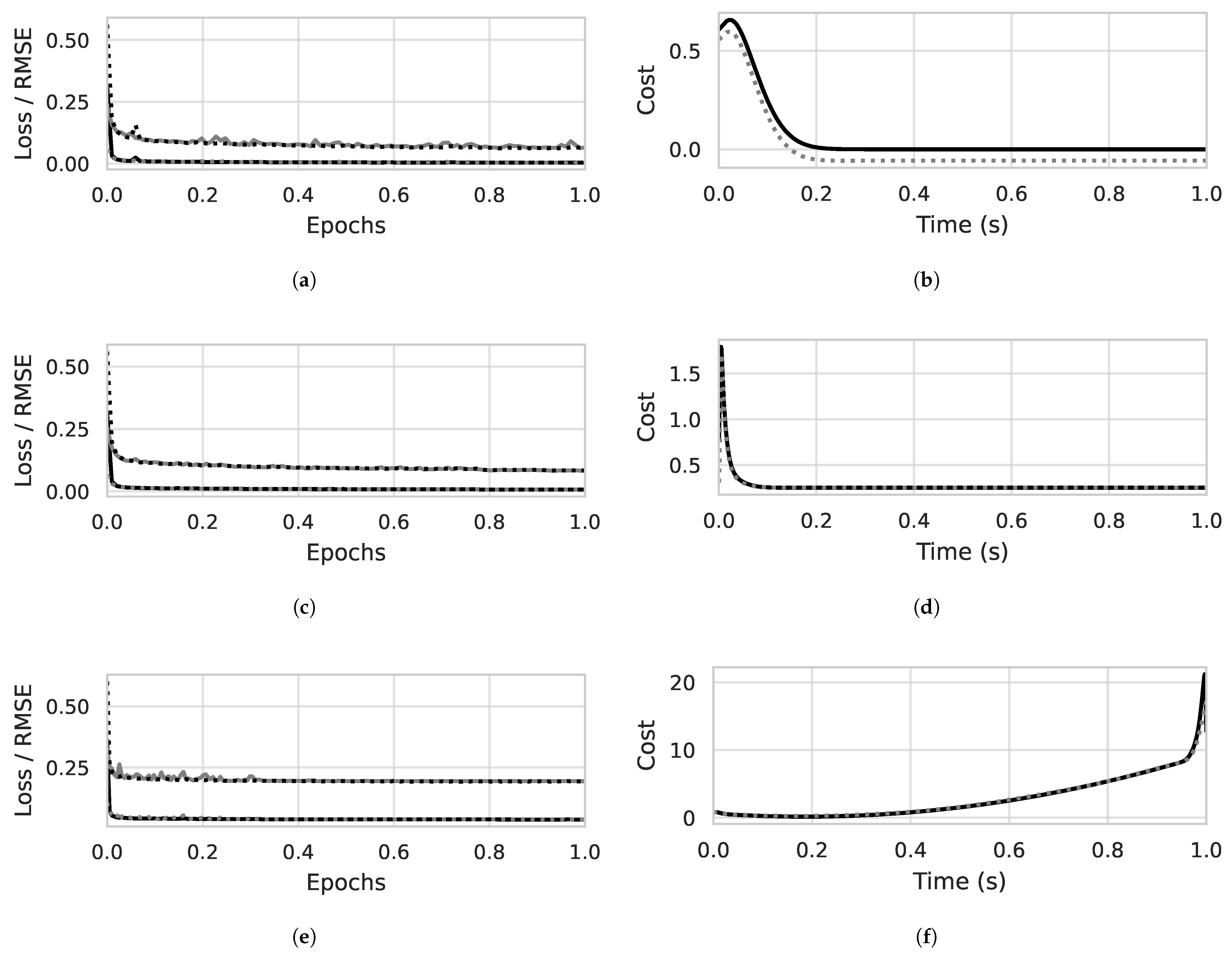 Figure 6f (SM) show the root mean square error (RMSE) between the actual and predicted values, as well as the training loss. In all cases, the RMSE is less than 0.1 for both training and validation data (30.0% of the initial dataset).