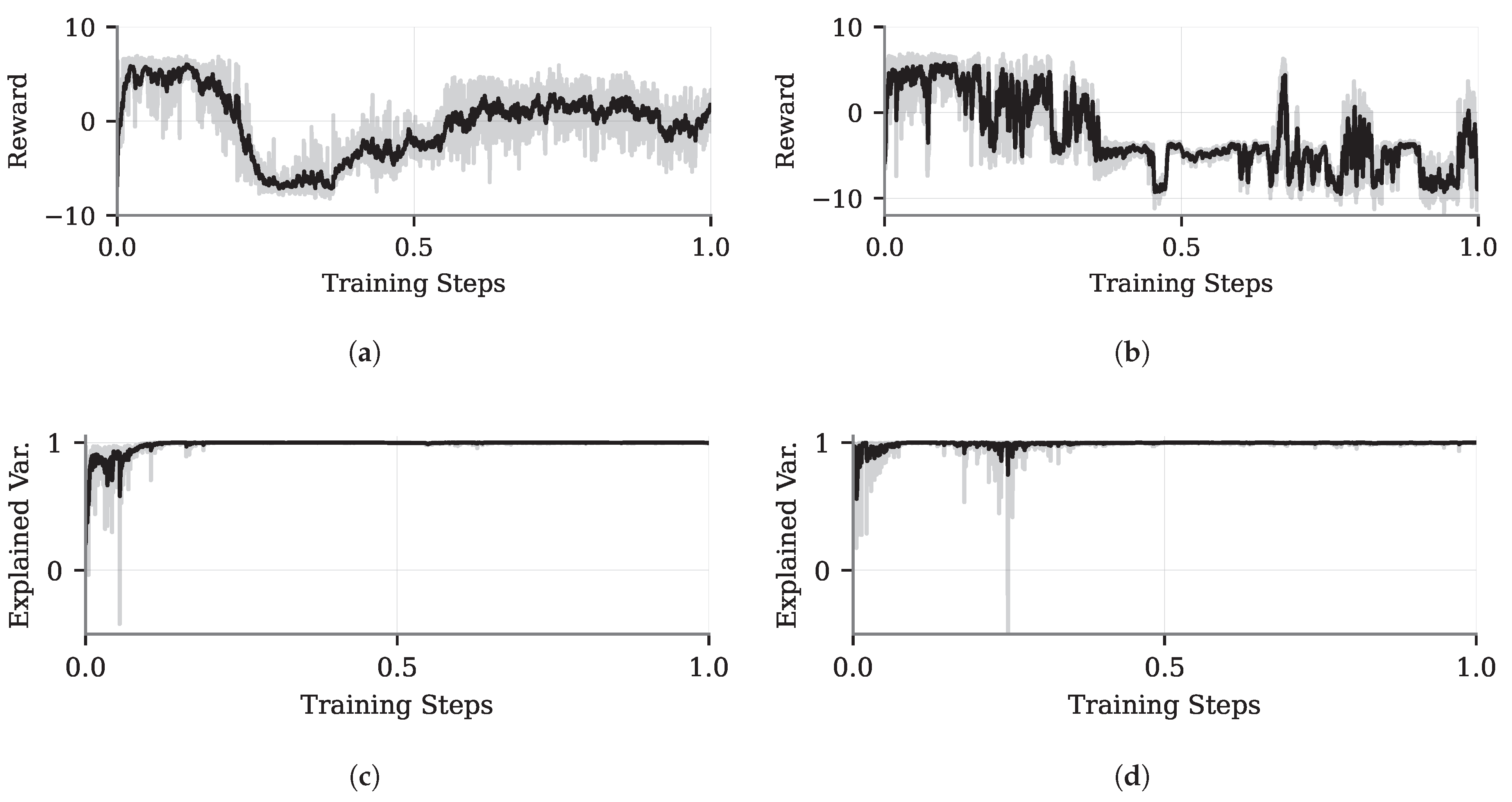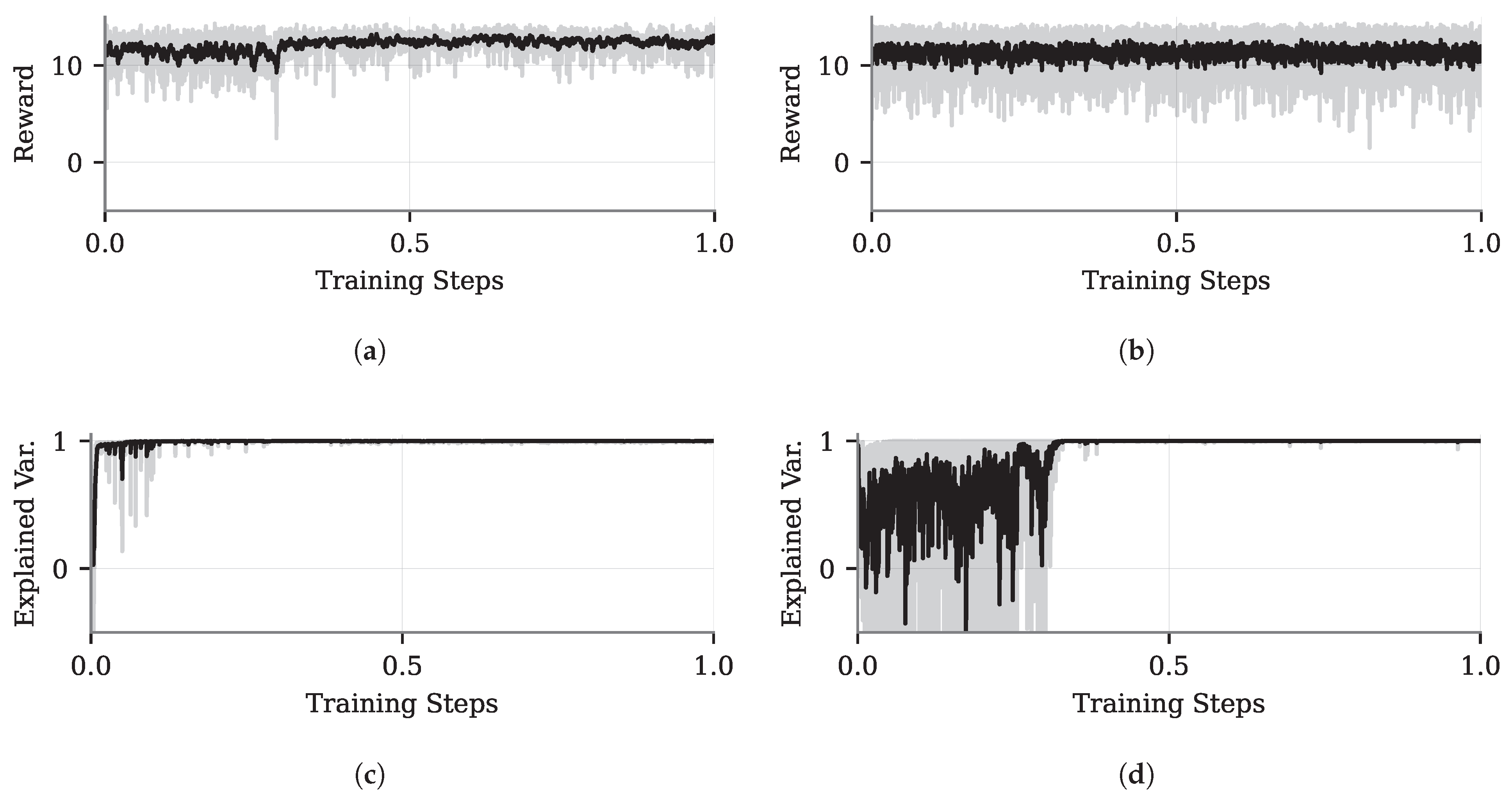 , tends toward zero, the high variance in the reward (shaded gray area) occurs because the chosen controller may not always guide the cart to the center. As training progresses, the task difficulty increases, causing the loss to rise until it stabilizes around the midpoint of the process (
