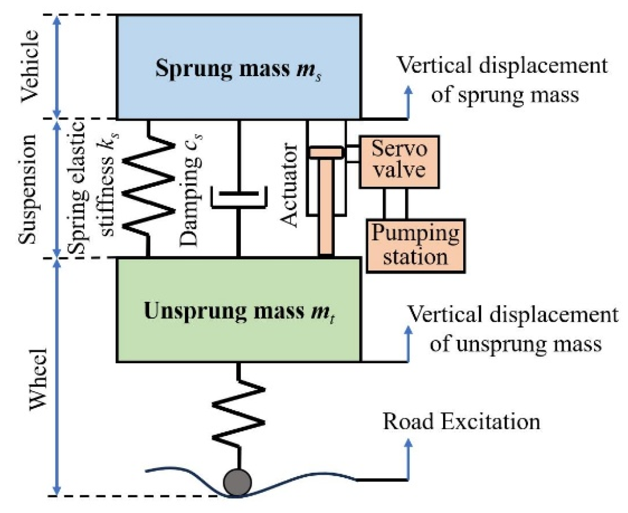 2]. Active suspension systems utilize actuators to generate control forces that maintain optimal dynamic tire loads, enhancing handling stability and steering precision. These systems also improve ride comfort and operational stability while enabling dynamic coupling control between sprung and unsprung masses across various operating conditions, establishing active suspensions as a critical direction in modern automotive technology development [