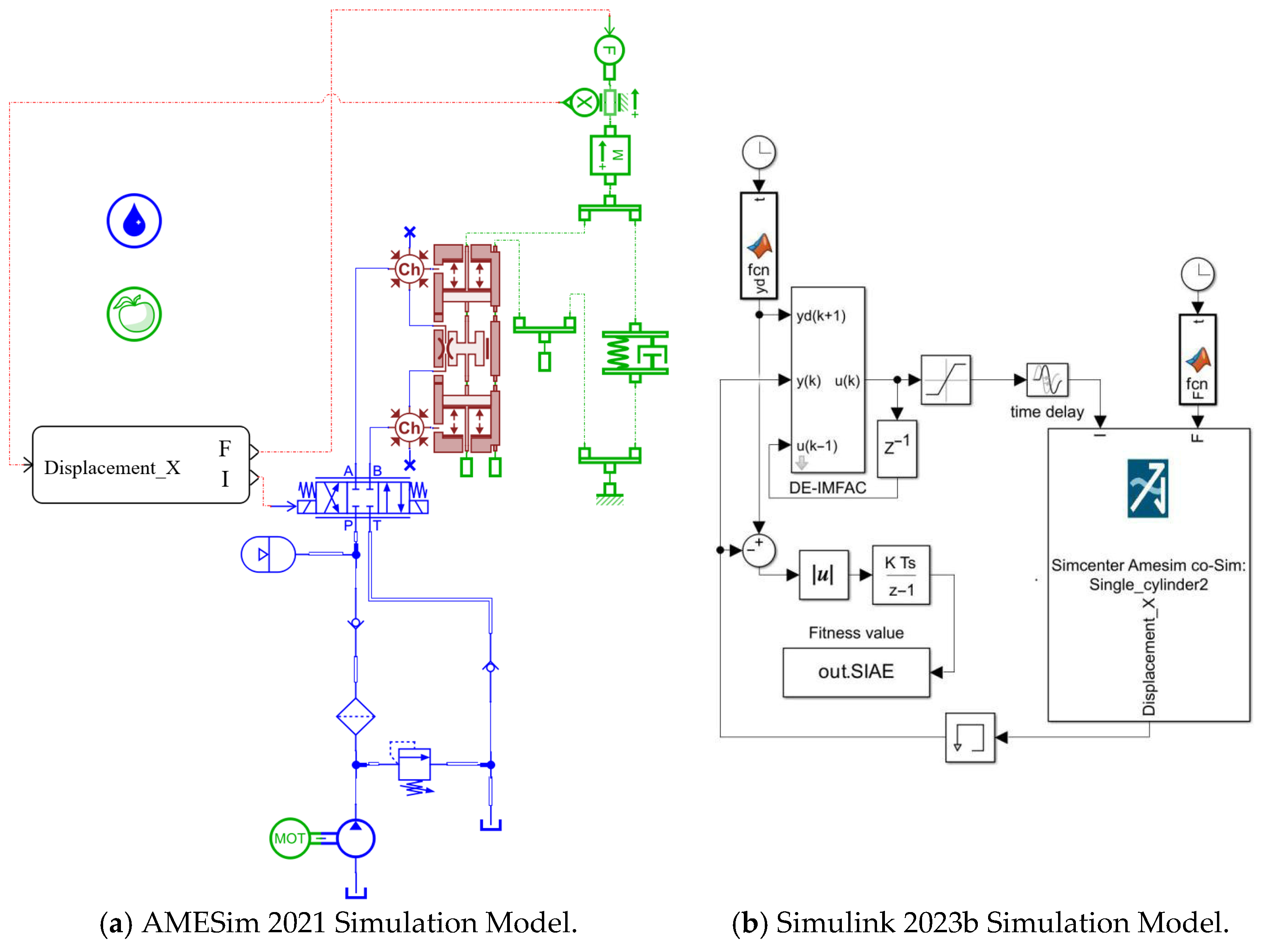 Figure 4. The controller implementation utilizes Simulink 2023b’s discrete solver with a sampling time of 0.0001 s. The electro-hydraulic servo actuation system is constructed in AMESim 2021, with detailed parameter settings listed in