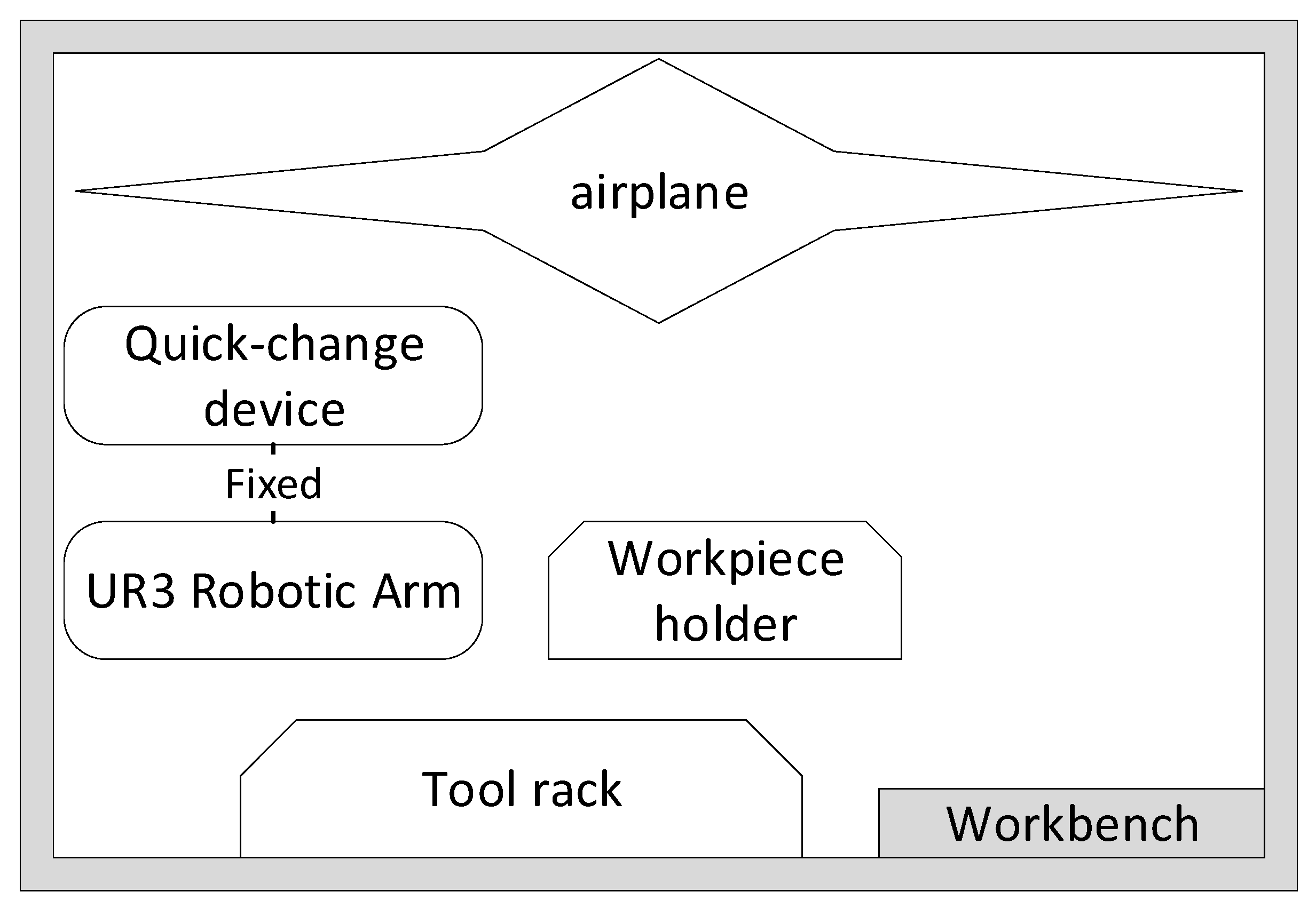 Platform Positioning: The experimental workstation depicted in Figure 1 is designed for aircraft model assembly, aiming to validate multi-task (drilling, assembly) processes and spatial relationships. It does not represent an industrial production line for actual commercial aircraft fuselages.