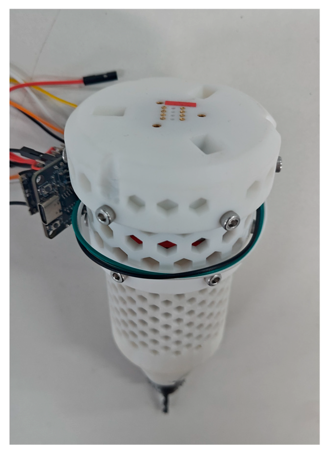 To validate the effectiveness of the universal motor driver and peripheral adaptation circuitry, this paper employs a drill bit tool as an experimental model. The physical drill bit tool is shown in Figure 9. Based on the circuit design methodology proposed in Section 3, the motor driver PCB underwent optimized layout to produce an integrated motor driver circuit board suitable for the quick-change mechanism. Its schematic and physical diagrams are presented in Figure 10.