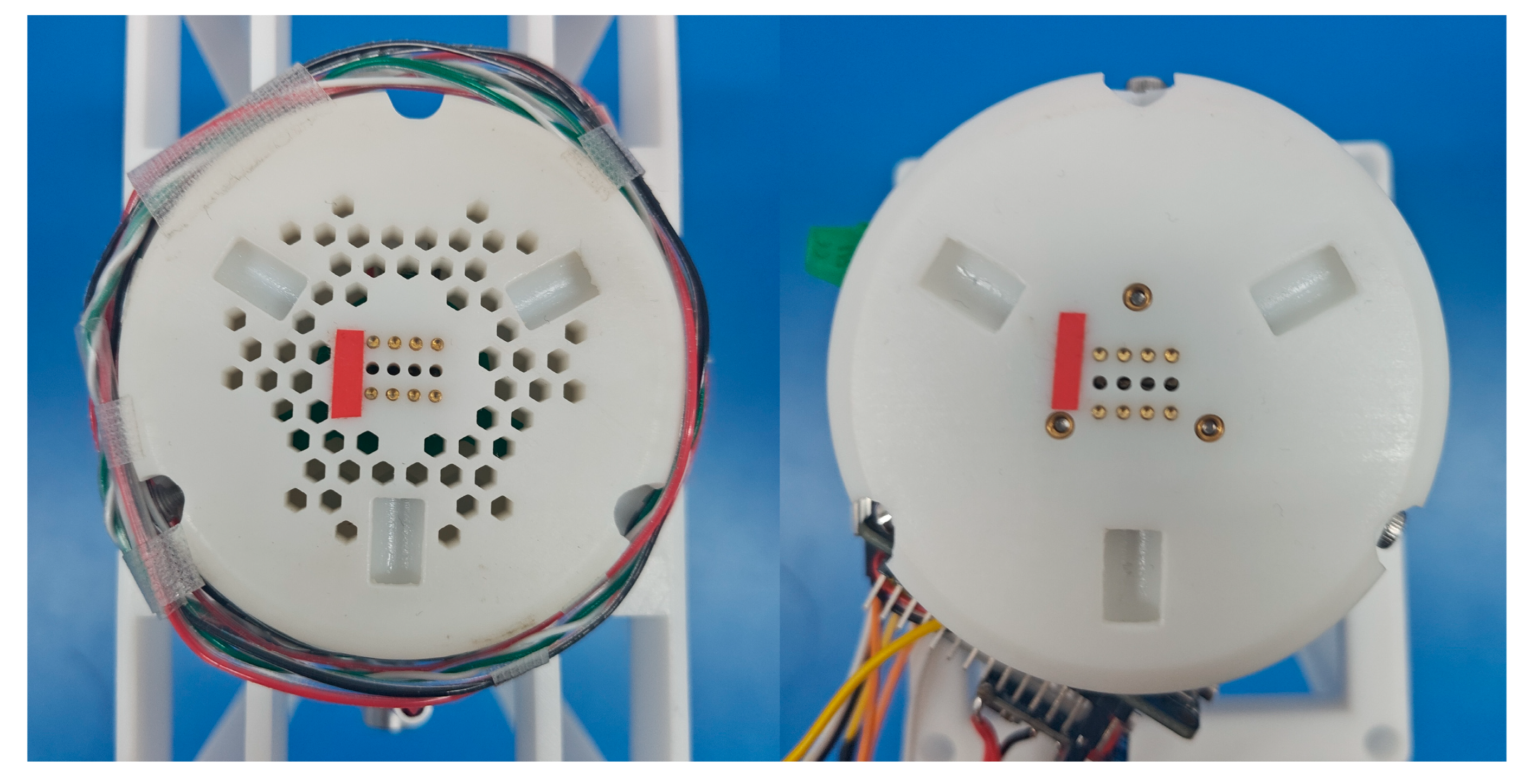 To further validate the mechanical and electrical connection reliability between the quick-change device and the tool end, dedicated docking tests were conducted. Figure 14 illustrates the docking interface structure between the gripper tool, drill tool, and quick-change device, featuring three grooves designed for positioning engagement with the three jaws of the quick-change device. During docking, the grooves are first aligned with the jaws. Subsequently, using the drive method described in Experiment 1, the jaws are controlled to move radially in synchronization, completing the mechanical locking and electrical connection of the tool. The unlocking process achieves simultaneous disengagement of the mechanical and electrical connections by reversing the drive of the jaws.