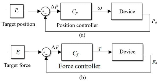 Control algorithms. (a) Position control. (b) Force control.