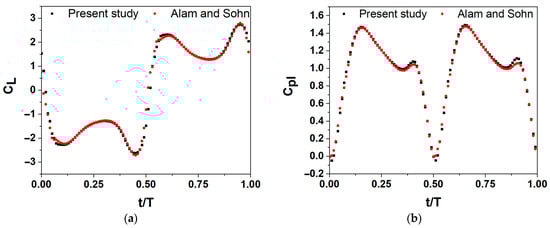 The parameters used in this study are as follows: pivot point at = c/3, phase angle = 90°, reduced frequency = 0.14, and heaving amplitude = c, consistent with the conditions reported in [53].