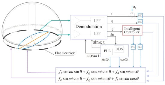 Rate integrating resonator gyroscopes (RIRGs) represent a kind of resonant gyroscope that has been adequately discussed and extensively applied within the inertial navigation community. These gyroscopes exhibit characteristics such as direct angular measurement and unlimited dynamic range [1,2]. The accuracy of the RIRG does not depend on the dimensions of the resonator, but rather on the material mechanism and manufacturing process, which can lead to two major types of errors in vibration: damping asymmetry and frequency mismatch [3]. The requirements for suppressing instability in high-precision applications are necessary, encompassing more demands on the complexity of the control system and the accuracy of the error analysis.