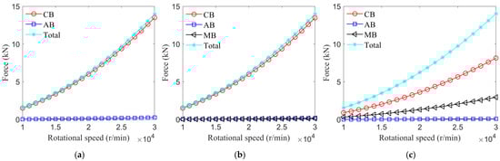 With the same primary structural parameters, the forces, MMS, and deformation of the magnetic bridges in three rotor structures vary with rotational speed as shown in Figure 14 and Figure 15. In Figure 14, the forces on magnetic bridges increase with speed. Although two additional middle bridges are included in Scheme 2, their inappropriate direction angle results in primarily bending deformation, preventing them from effectively sharing the overall centrifugal load. Thus, in both Schemes 1 and 2, the central bridge remains the main load-bearing structure, experiencing similar forces at different speeds. In contrast, the middle bridge direction angle in Scheme 3 is 0°, and the middle bridge only bears the tensile load, which can share 21% of the total centrifugal force, thus effectively reducing the force on the central bridge.