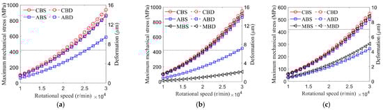 It is evident that increasing the central bridge thickness effectively reduces the MMS and deformation of the magnetic bridges, significantly enhancing the mechanical strength of the V-shaped rotor. Reducing the central bridge width only lowers the deformation but makes little contribution to decreasing the rotor MMS.