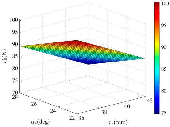 Following the completion of the parameter sensitivity analysis, it can be inferred that exhibits a linear relationship with the outer arc radius of the permanent magnet and its mechanical pole arc coefficient . This finding is consistent with the conclusions derived from the analytical formula, allowing this parameter to be excluded from the scope of multi-objective optimization. Consequently, the objective function and its associated constraints can be established using Equation (12), facilitating the collaborative optimization of various targets related to thrust characteristics within the effective stroke range and thereby forming an initial optimization plan.