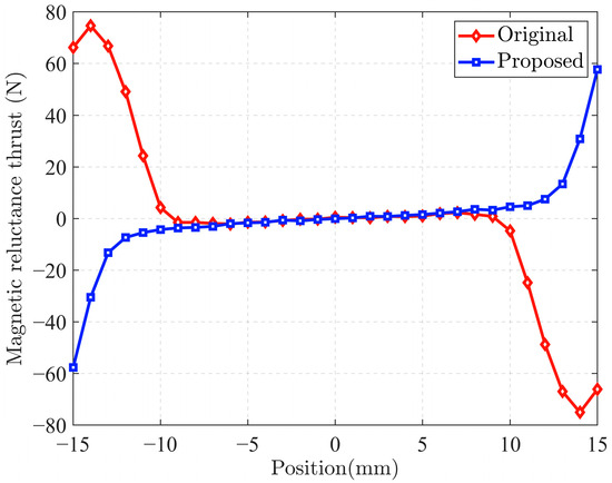 Comparison chart of magnetic reluctance thrust before and after optimization.