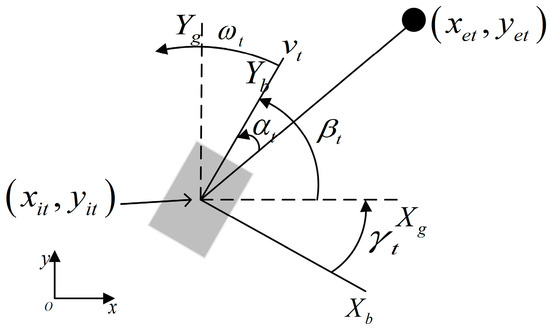 where represent the initial coordinates of the vehicle, and denote the target point coordinates. The symbol corresponds to the angle between the -axis of the body coordinate system and the -axis of the fixed coordinate system, and corresponds to the forward speed of the vehicle.