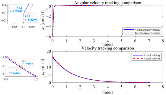 Figure 4 presents the path diagram for the single-point simulation, illustrating the vehicle’s path. Figure 5 depicts the tracking performance of the sliding mode control for the single-point tracking task, showcasing how effectively the control method follows the target point. Lastly, Figure 6 provides the control input diagram, highlighting the system’s inputs during the tracking process and offering insights into the control strategy’s dynamics.