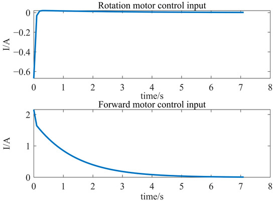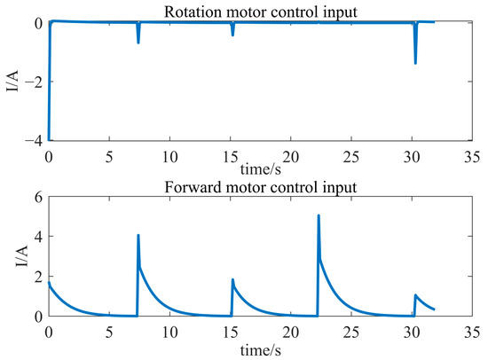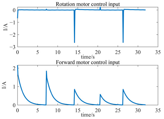 A comparison between Figure 12 and Figure 13 demonstrates that, despite some deviations between the actual and target paths, the vehicle successfully completes the obstacle avoidance task. The figures also highlight that, in complex operational environments, allowing for a margin of error is often essential. This margin ensures the vehicle has adequate space to navigate, perform effective obstacle avoidance, and carry out coverage monitoring tasks. Additionally, Figure 14 illustrates the control input applied to the vehicle during this phase, providing further insights into the system’s response and performance under these conditions.