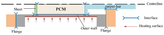The simulation software is used to solve the governing equations presented in this paper, with secondary development possible through the custom module of the software. The physical model used in the experiments consists of two main components: the outer wall made of 304 steel, and the inner PCM composed of n-octadecane. As the actuator is an axisymmetric structure, the model is simplified to a two-dimensional axisymmetric form, facilitating the calculation process. The computational domains and boundary conditions are illustrated in Figure 7.