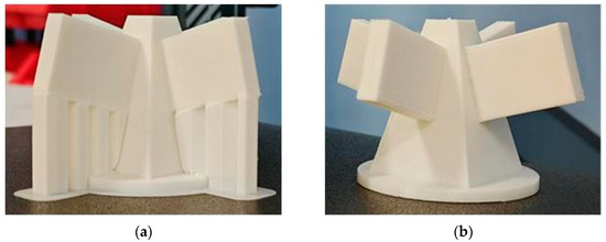 Comparison of the parts manufactured using different methods: (a) the part manufactured using the three-axis AM method; (b) the part manufactured using the five-axis AM method.
