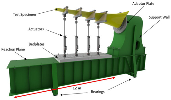 However, the technology associated with tidal energy is at a significantly less mature level than the corresponding infrastructure in the wind energy sector. One of the most critical aspects of any tidal energy turbine is the design of its blades. Full-scale fatigue testing is one of the proven ways to validate the design of a structure before it is commissioned for a lifetime of deployment, and it has been applied to test aircraft wings [9], bridge members [10,11], and wind turbine blades [12,13,14].