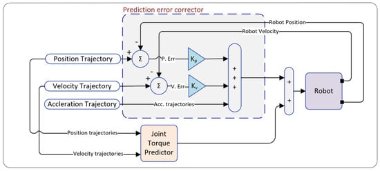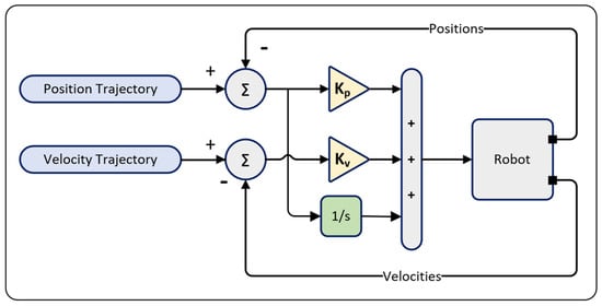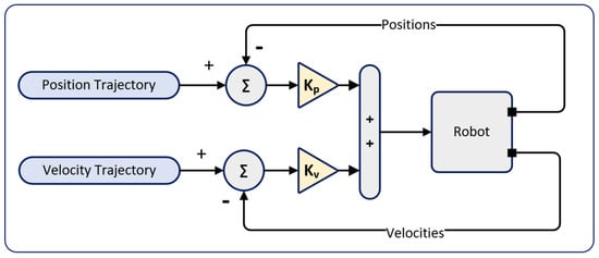 Two commonly used methods for developing dynamic models are the Newton–Euler and Lagrange methods. The Newton–Euler method derives equations using Newton’s second law of motion and Euler’s rotational dynamics, making it a classical approach for modeling. The Lagrange method, on the other hand, is based on energy conservation principles, offering an analytical way to derive equations of motion [11]. Robot dynamics include several components, such as the mass matrix, gravitational forces, Coriolis and centrifugal forces, and joint friction. Advanced friction models are often incorporated to predict joint friction phenomena accurately [12]. Separating components like gravitational forces and Coriolis and centrifugal forces enables the linearization of nonlinear dynamics, making the system more manageable for control design.
