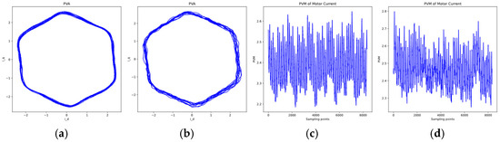 The ordinary PVA image is the trajectory of the point (, ) in the coordinate system, which is close to a hexagonal pattern, while the PVM image has the motor current sampling points on the horizontal axis and the corresponding PVM values on the vertical axis. As shown in Figure 2, the PVA images of normal and faulty motors show slight geometric differences, while the PVM images show more obvious differences in oscillation characteristics, which are easier to capture with deep learning models.