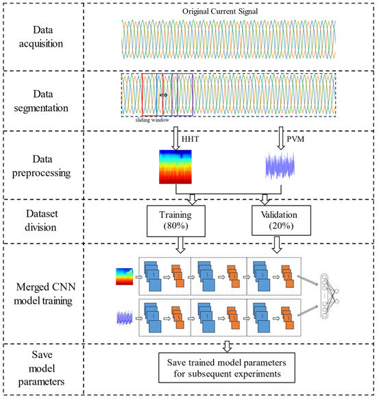 Deep learning (DL) methods can automatically learn hierarchical features of input data without the need for manual feature engineering, thus enabling efficient classification of preprocessed signals. Current research includes the convolutional neural network (CNN) [36,37], deep belief network (DBN) [38], autoencoder (AE) [39], generative adversarial network (GAN) [40], and Kolmogorov-Arnold Network (KAN) [41,42]. While some studies have applied one-dimensional CNNs (1D CNNs) directly to raw current signals [43,44], eliminating the need for signal preprocessing, this approach can struggle with complex noise patterns and load variations that are common in industrial settings. In addition, cognitive computing is a more novel approach, and related research can be found in references [45,46].