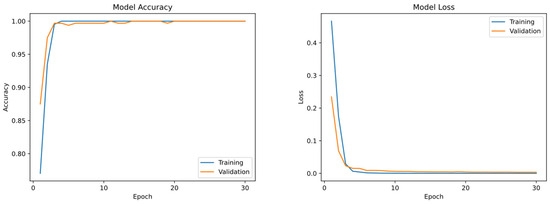 Practical applications of fault detection require not only high accuracy but also computational efficiency of the algorithm [61]. The CNN algorithms for this experiment are executed on the TensorFlow Keras platform, and all experiments are implemented on a Windows personal computer with an Intel Core i9 12th Gen. CPU.