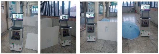 As shown in the experiments, AMCL uses 2D LiDAR scan matching for positioning; the positioning accuracy is influenced by map similarity and feature points. However, RTAB-MAP can use a visual SLAM approach to create 2D or 3D maps by using an RGB-D camera. LiDAR is used to estimate its position and orientation in the map simultaneously. Therefore, RTAB-MAP can perform closed loop detection by using the two sensors to more accurately extract environmental features. Therefore, the positioning accuracies of RTAB-MAP in the three methods are better than those of AMCL. RTAB-MAP positioning relies on both visual and LiDAR data to achieve positioning accuracy, while AMCL only considers LiDAR information, leading to low accuracy. However, the depth camera used by RTAB-MAP is affected by light; thus, the detection results are affected by the accuracy of map construction and positioning as well as navigation error accuracy. The AMCL method uses 2D LiDAR for particle filtering positioning; the AMCL method does not depend heavily on light conditions and can be used even if the visual information is limited or disturbed. Therefore, in scenarios where the light conditions change greatly, the performance of AMCL will be better than that of RTAB-MAP, which requires visual positioning.