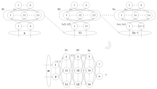 The classification principle of ELM is as follows: Assuming the input data are represented as , and the expected output is represented as , where n is the total amount of data, the ELM model can be expressed as follow