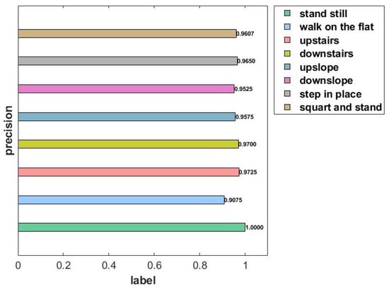 The recognition precision of the PSO-ELM model for each gait phase of Subject 1.